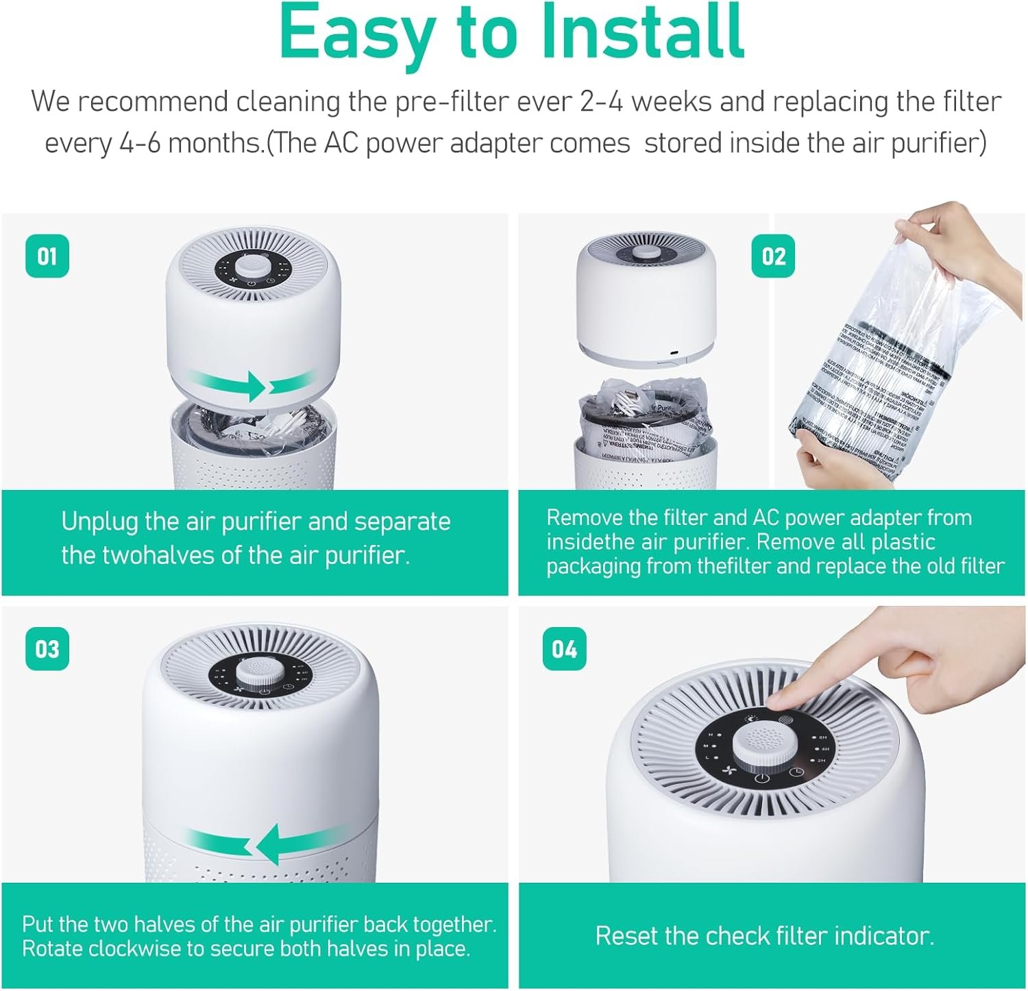 Official Filter Replacement: Our TPLMB air purifier after 1500 hours of use. A red indicator light will light up to remind you to change the filter. In order to maintain the purification effect, it is recommended that you search for “B0C5F4P9ZV” to purchase official replacement filters. (Other filter elements are not compatible with P60 air purifiers)