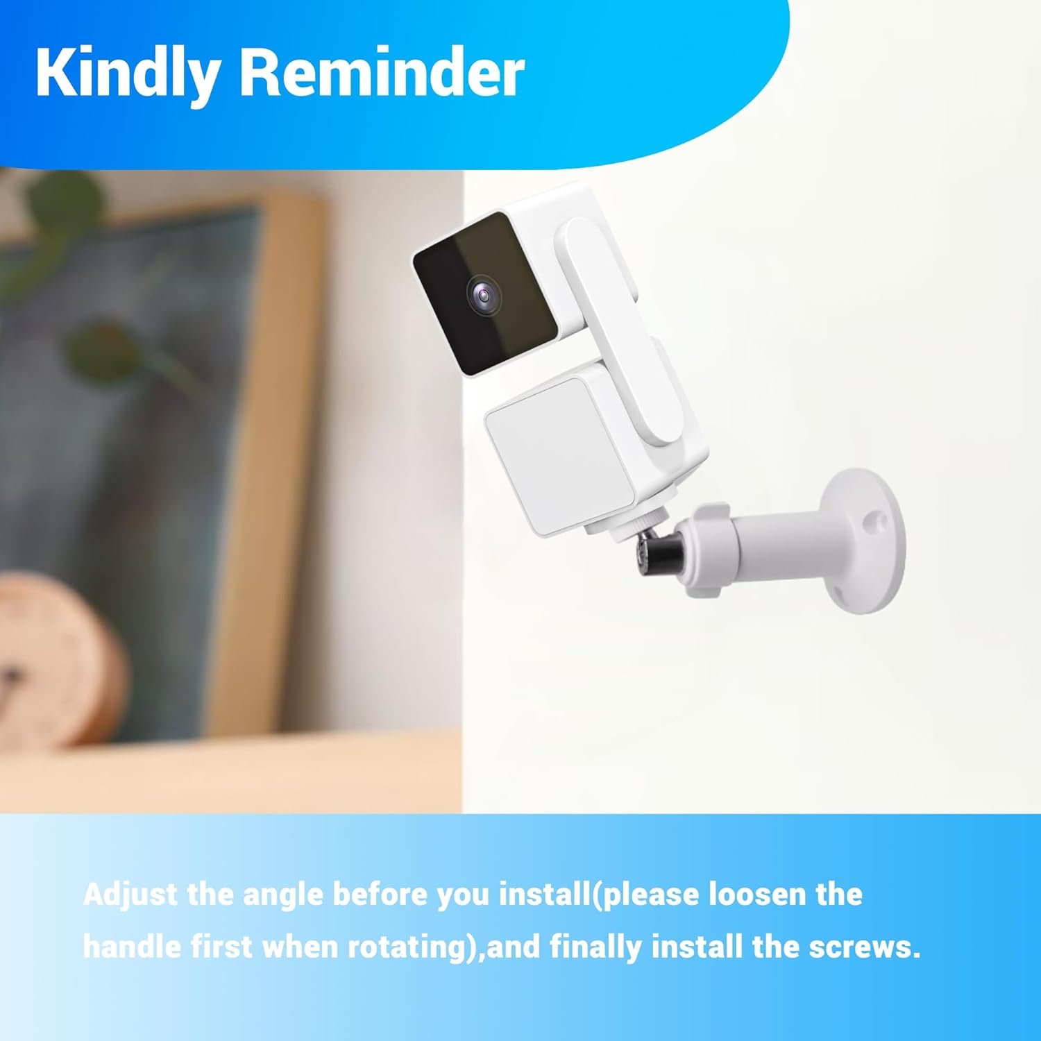 Compatible with Wyze Cam Pan & Wyze Cam Pan V2 & Wyze Cam V3, Adjustable Indoor Outdoor Mount for WyzeCam Pan/WyzeCam Outdoor/WyzeCam V3 or Other Cam with Same Interface.Wall mount for Wyze cam pan v3K,wall mount for Wyze Cam V4,Wyze Cam Outdoor wall mount.Flexible & Adjustable – It Can be rotated through 360 Degree Swivel and 90 Degree Tilt Loosing the plastic nut to get the angle adjustable Locking the plastic nut after pointing to the angle you need.Stable- Made of sturdy metal and ABS plastic material, oxidation resistance, can be applied to indoor or outdoor use.Easily adjustable with 360-degree swivel & 90-degree tilt For Indoor & Outdoor Use