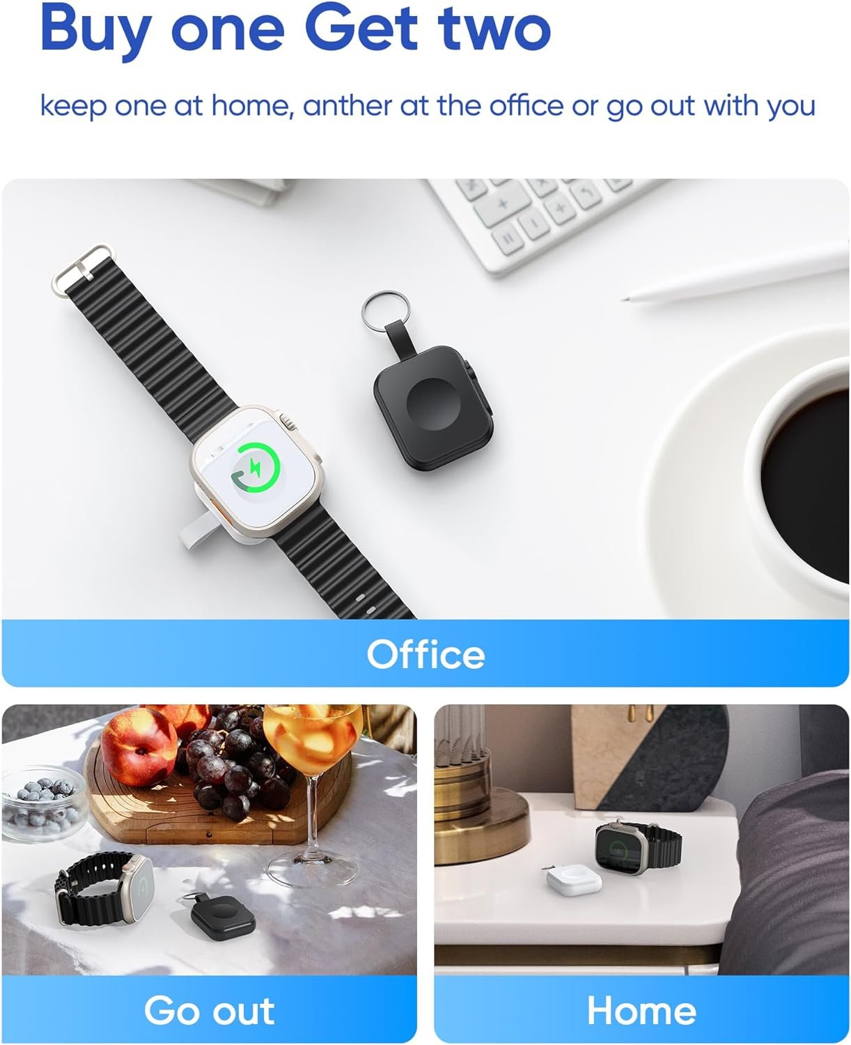 We know you’d prefer to have two packs,buy one and get two.Keep one at home, another at the office, or take it with you when you go out – it’s incredibly convenient. Or alternatively, use two, Now no reason for iwatch to run out of power, without affecting the recording of your health data by iwatch,you can also give one to a friend,too.