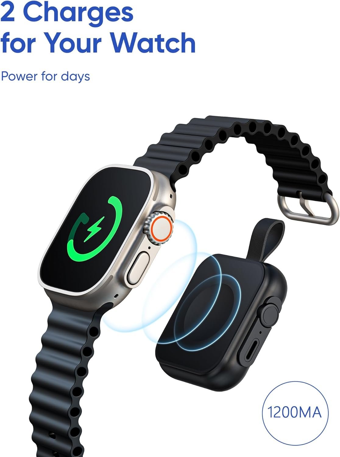 If you’ve ever been anxious about your apple watch running out of power, because needing to record health data last night,and hurry to go out in the morning,our 1200mAh wireless portable power bank can solve your problem. It has the capacity to fully charge your watch twice.
