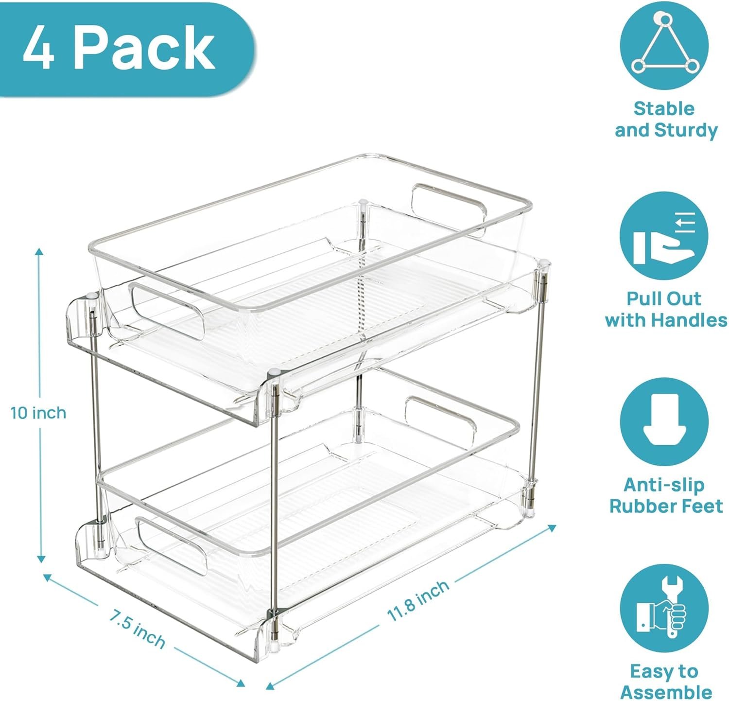 SLIDE-OUT DRAWER & STABLE STRUCTURE: The 2-tier storage organizer features two pull-out drawers with tracks to prevent swaying during use and built-in handle makes it easily to access hard-to-reach things. In addition, the bottom and top is fitted with 8 silicone non-slip pads for ensuring stability when pulling the organizer drawer out.