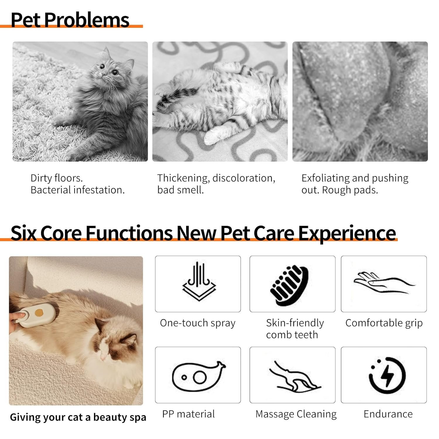 【Upgraded Steam Cat Brush】Cloud Care Cat Brush,Upgradable design makes it easier for you to groom your furry friends, its special spiral comb and steam jet function makes grooming dogs and cats a breeze.