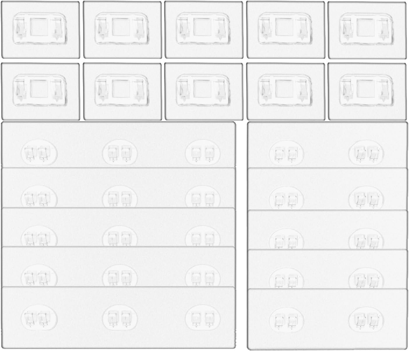 【Quantity】:We have a total of 20 shower self adhesive replacement : 10 single hooks (2.36*3.15inch), 5 double hooks (2.36*5.5inch), 5 triple hooks (2.76*10.24inch). Shower Caddy Adhesive Replacement Different sizes cater to various needs and can be cut if necessary. Ideal for kitchen and bathroom shelf organization.