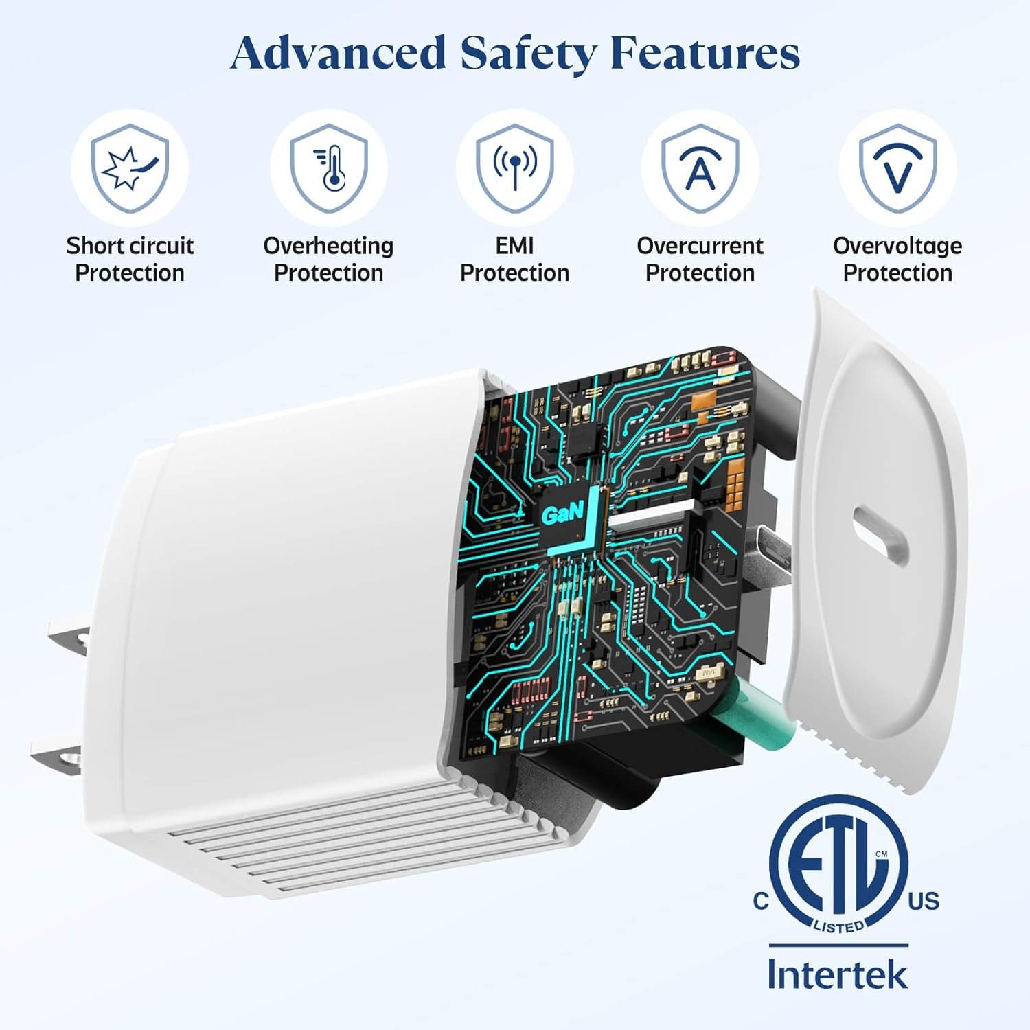 The USB-C PD fast adapters protect your device from overcurrent, over-voltage,short-circuit, and overheating, UL/ETL-certified Chargers can match the current required by the device automatically,charge the device fast,safely,and steadily.