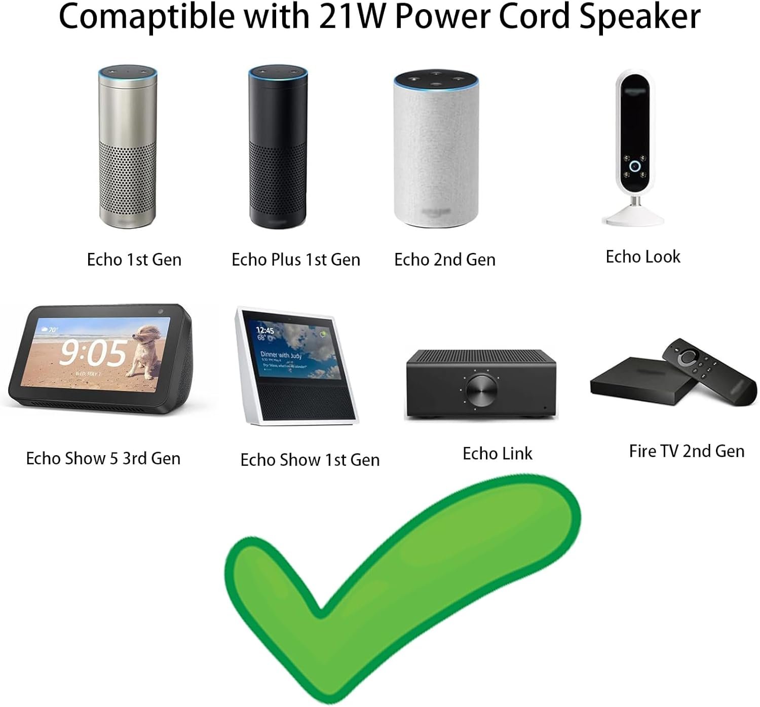 Compatible for Amazon Echo 1st Generation, Echo 2nd Generation, Echo Show 5 3rd gen, Echo Show (1st Gen), Echo Plus (1st Gen), Echo Look, Fire TV 2nd Generation, Echo Link