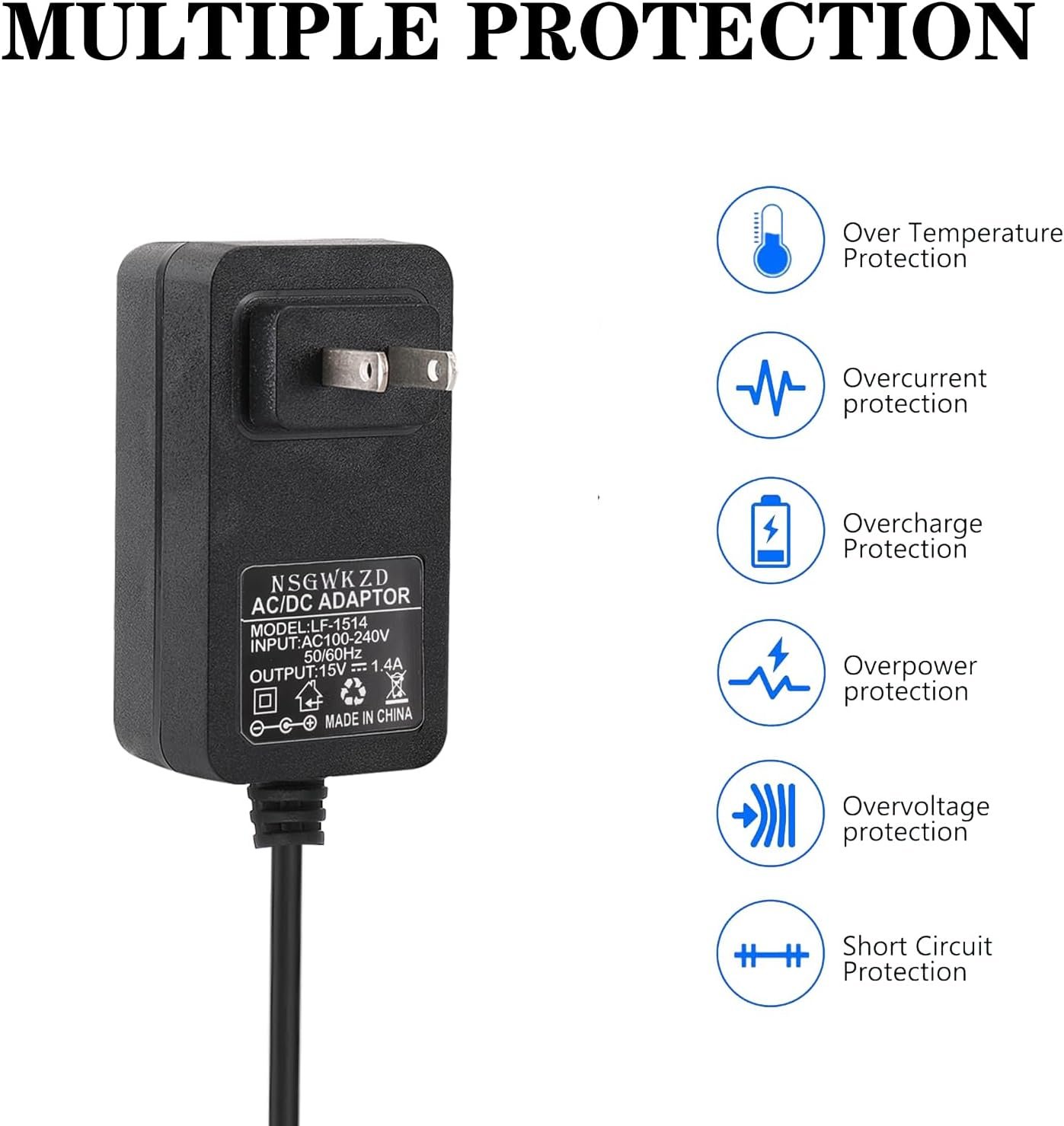Built-in IC smart chipset, converts AC to DC; With protection of over power, over current, over voltage, over temperature, short circuit