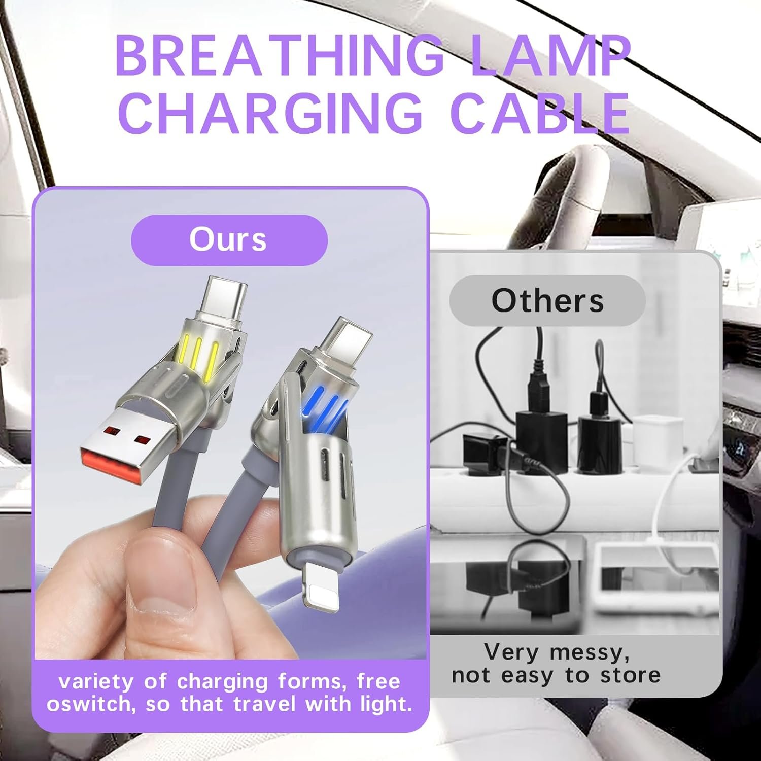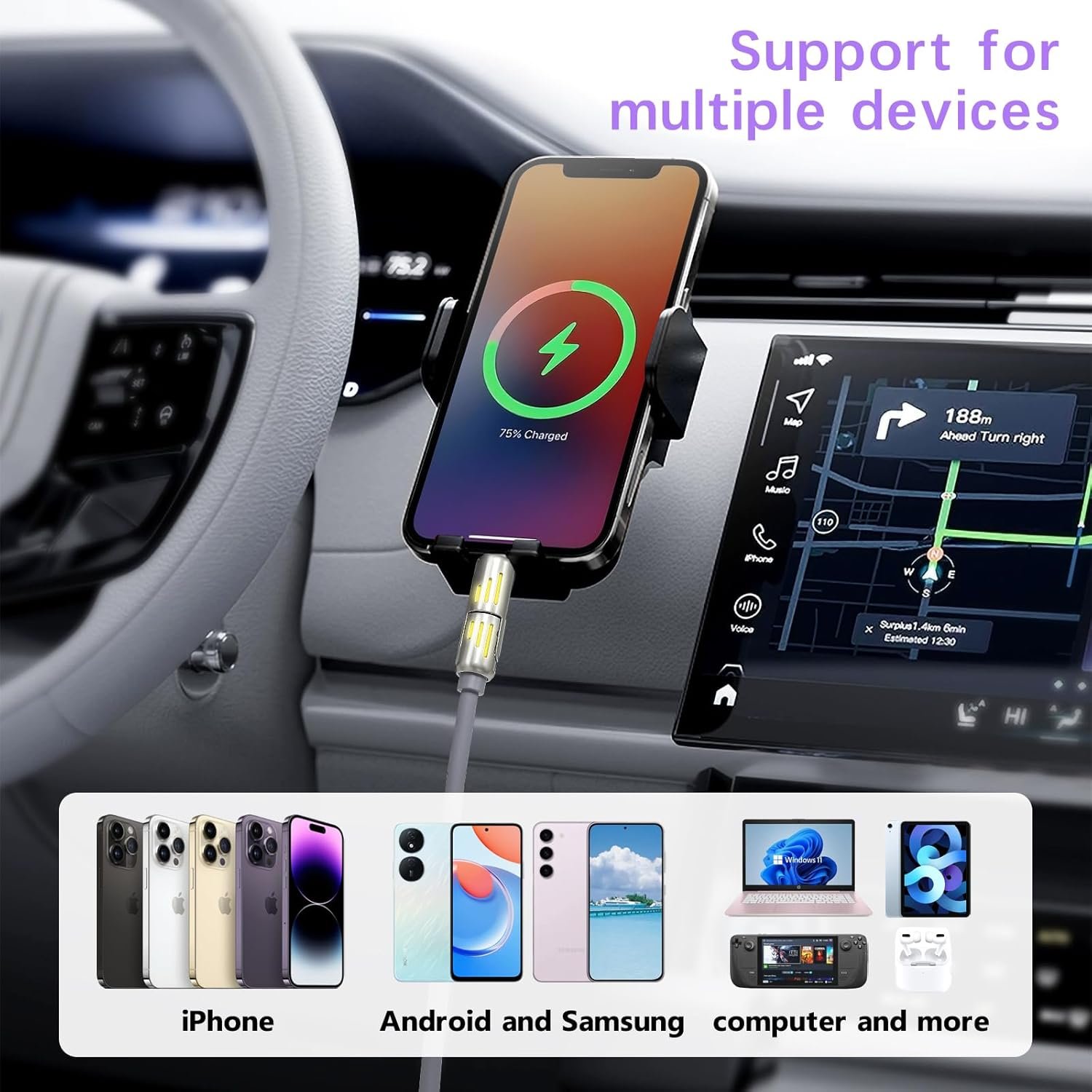 [CarPlay & Android Auto Support] This multi charging cable supports CarPlay & Android Auto, navigating and charging at the same time. No matter what phone your family and friends in the car are using, cable charging all. Make life more convenient