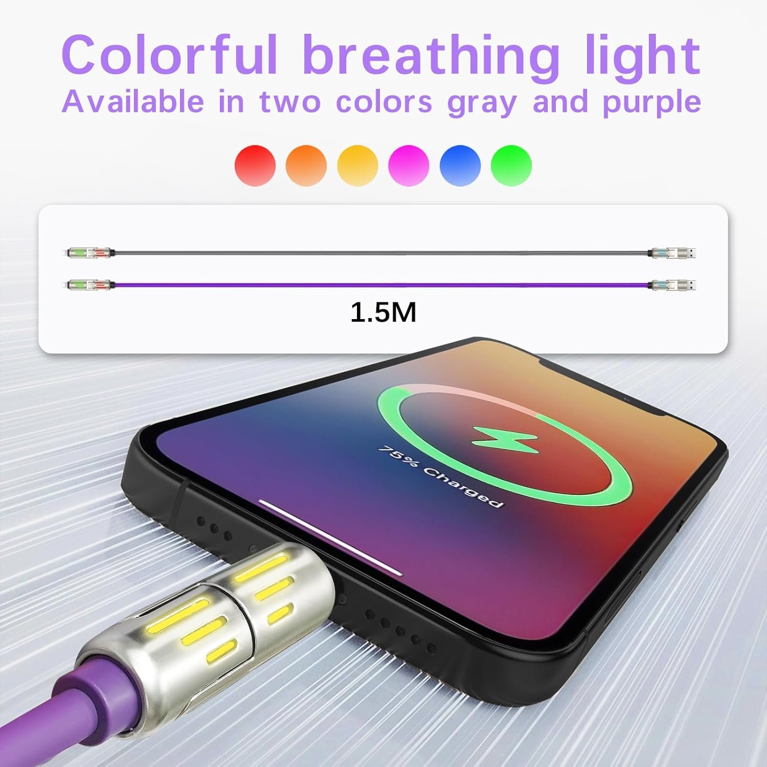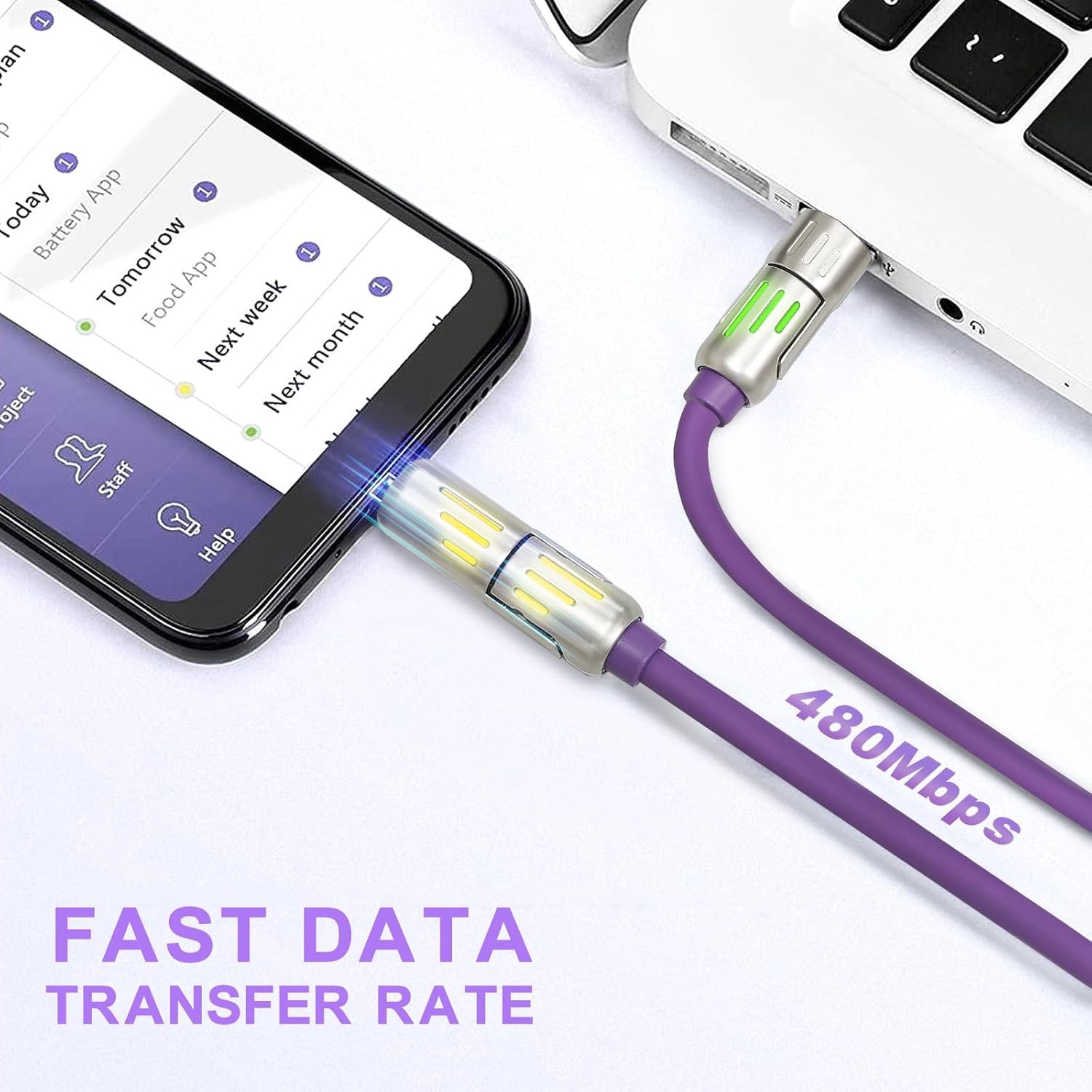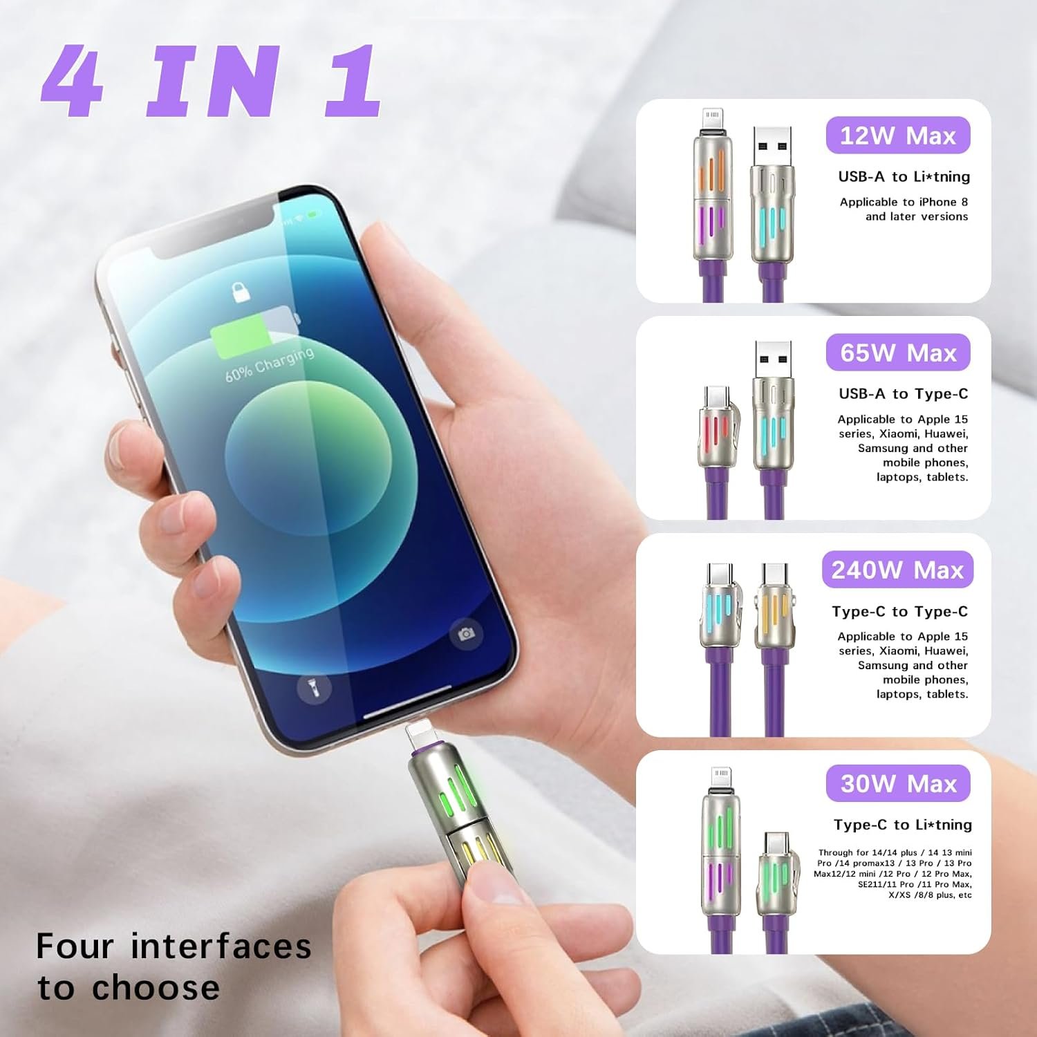 [240W Fast Charging & Data Transfer] This charger cord provides up to 65W Output. The phone can be charged up to 65% in 30 minutes. In addition, 4 in 1 charging cable also supports data transfer, 1G file transfer takes only 19 seconds