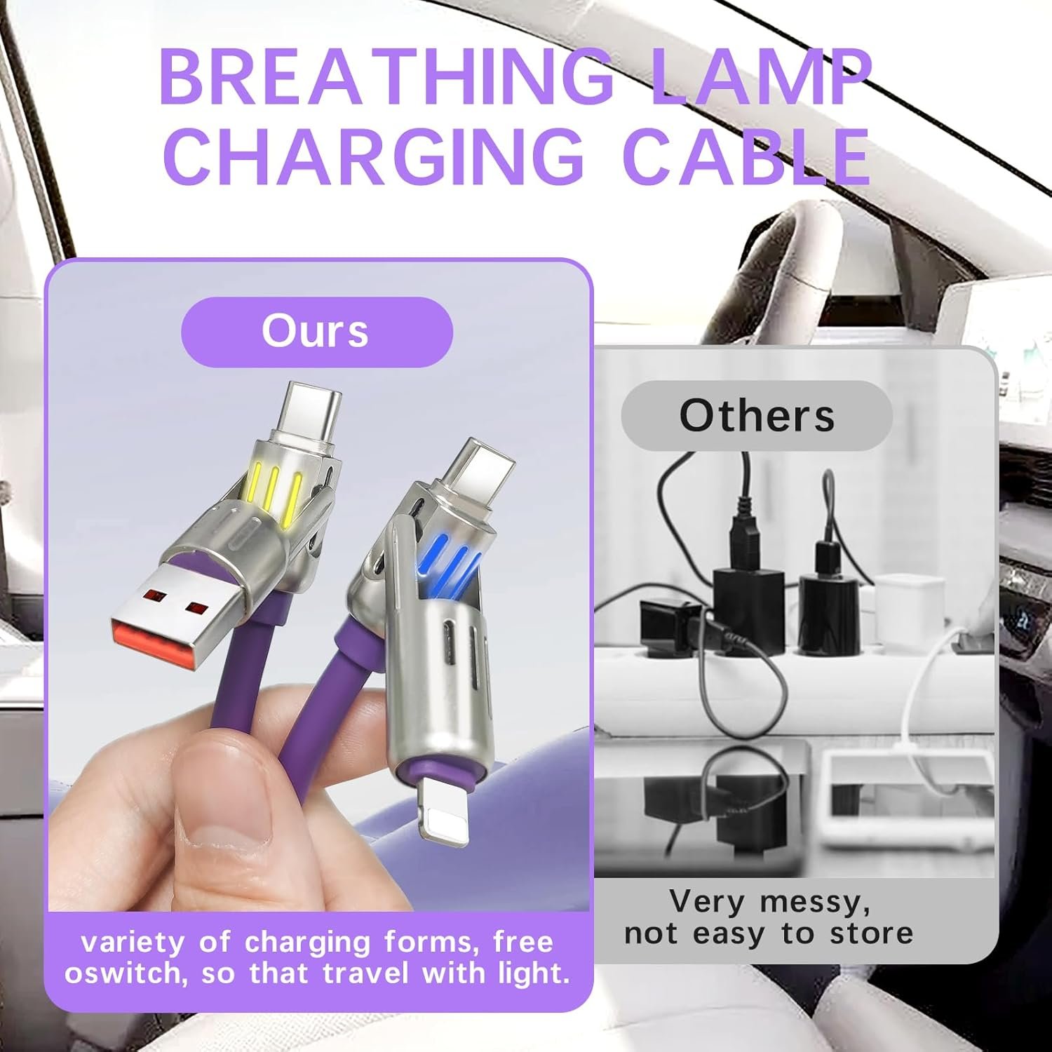 [4-in-1 Versatile Cable] Fast Charging Cable is designed to simplify your life. It has four ports, combines – USB C to USB C, USB C to L, USB A to L, and USB A to C – in one cable. One cable meeds all your charging needs