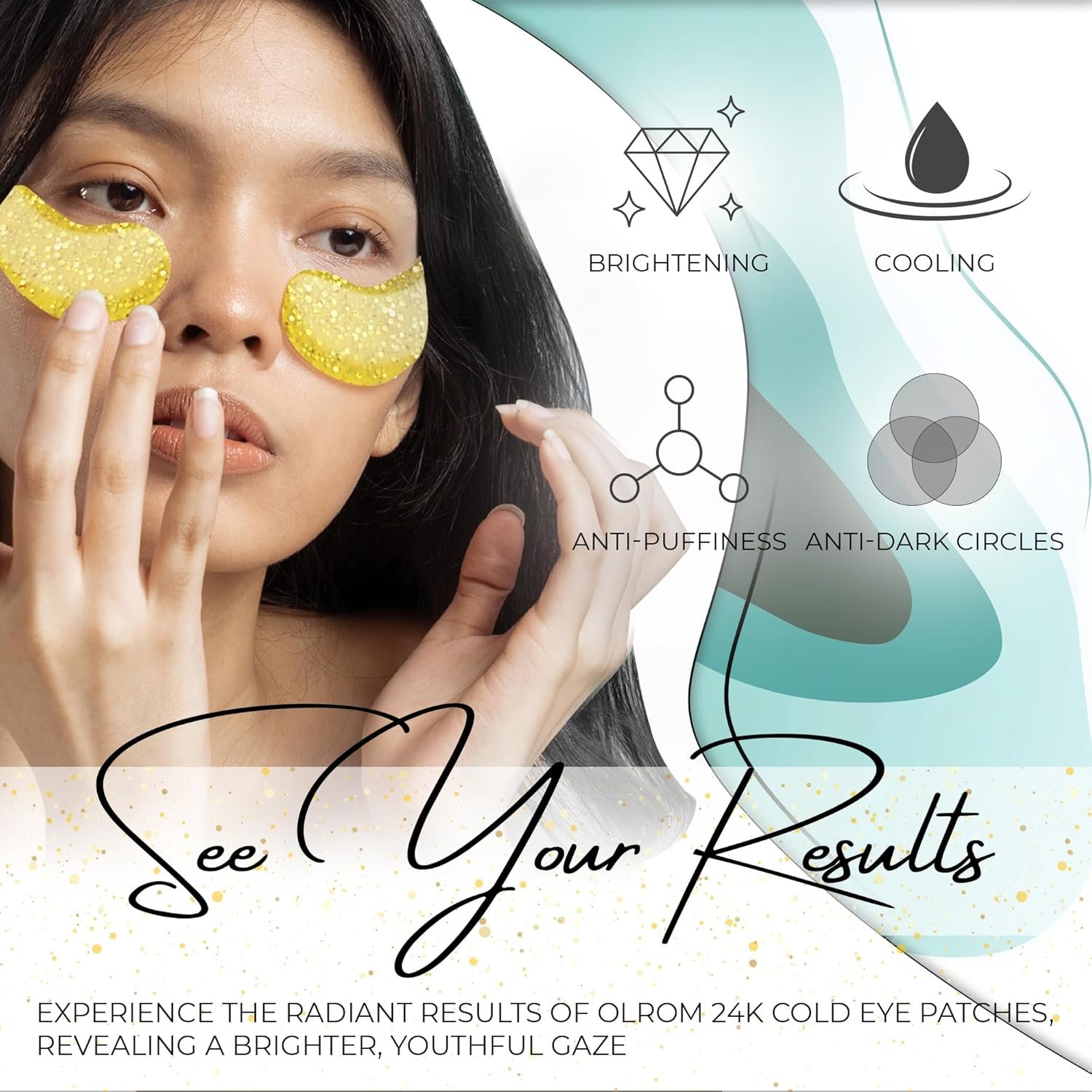 Olrom 24K Gold Under Eye Patches - Vegan, Hydrating, Anti-Aging, for Dark Circles & Puffiness, Olrom 24K Gold Under Eye Patches - Vegan, Hydrating, Anti-Aging, for Dark Circles & Puffiness,