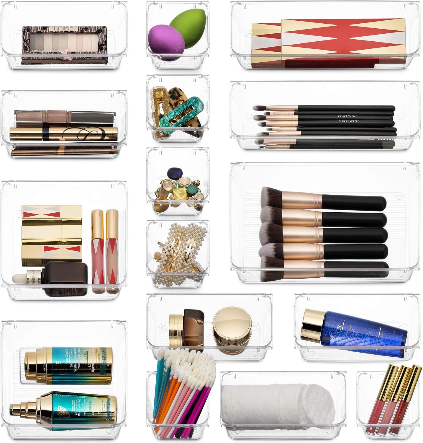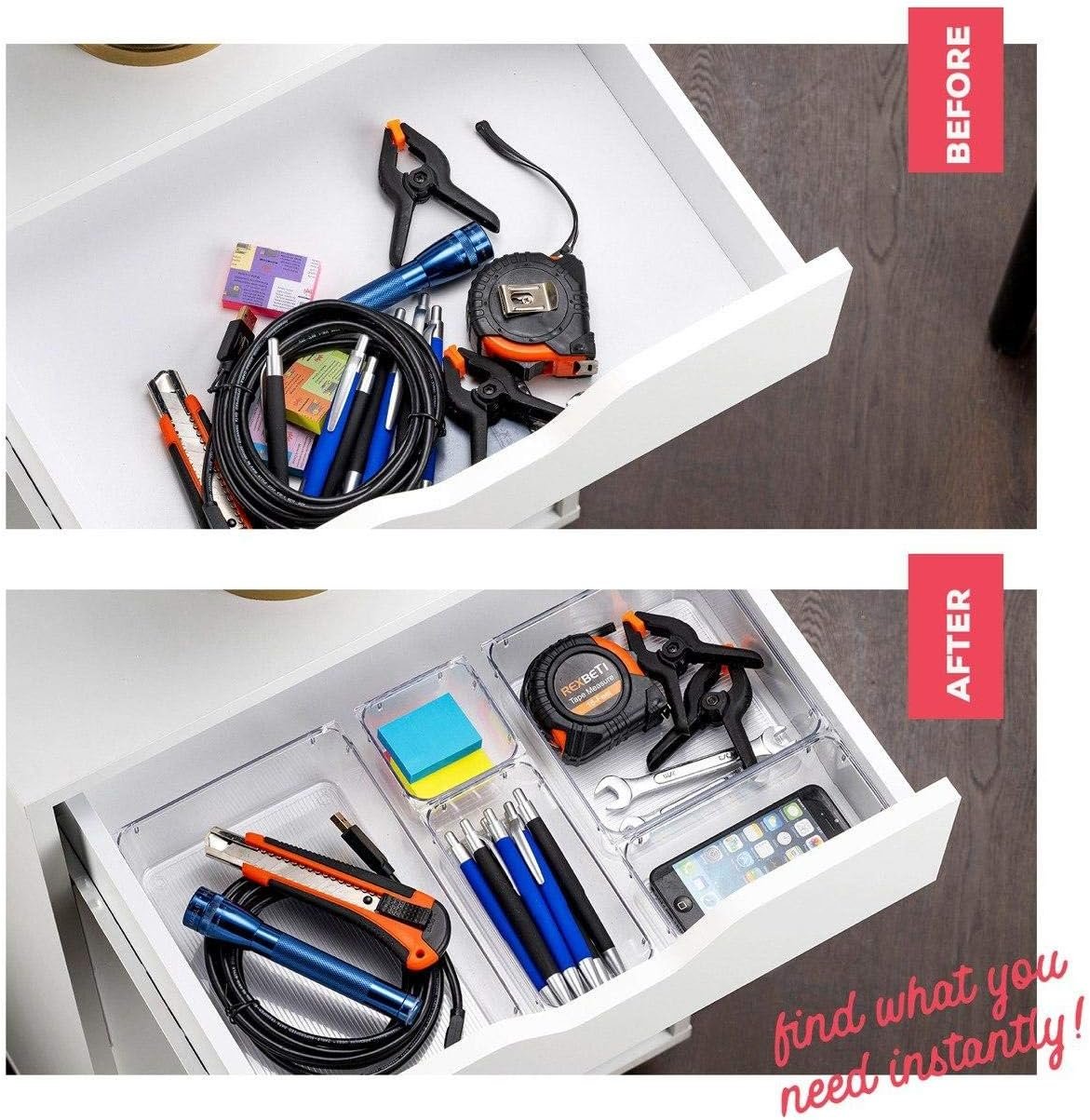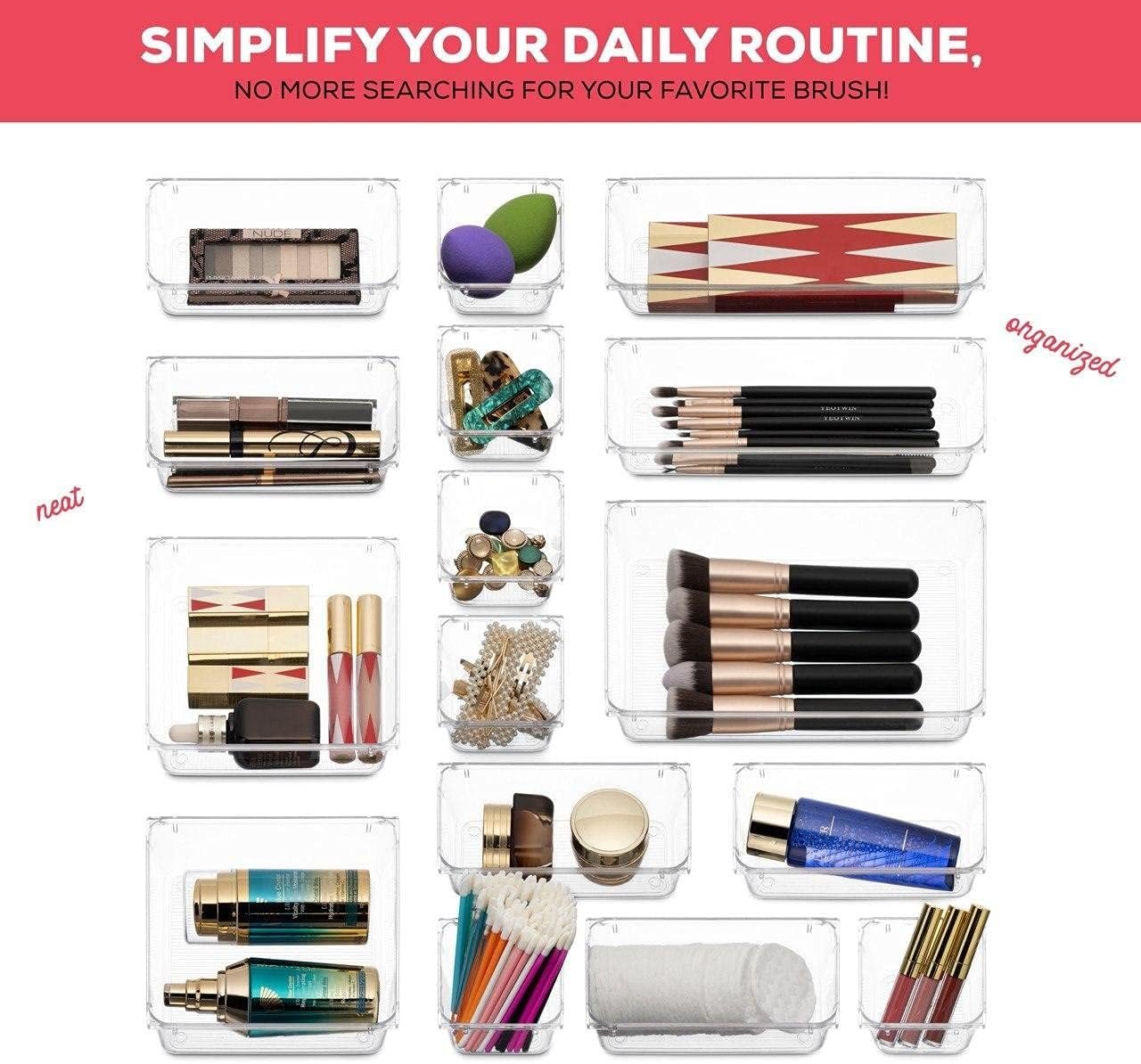 Keep your Desks Drawers Dressers or Vanity neatly organized with these Multipurpose Clear Plastic organizer storage Trays.