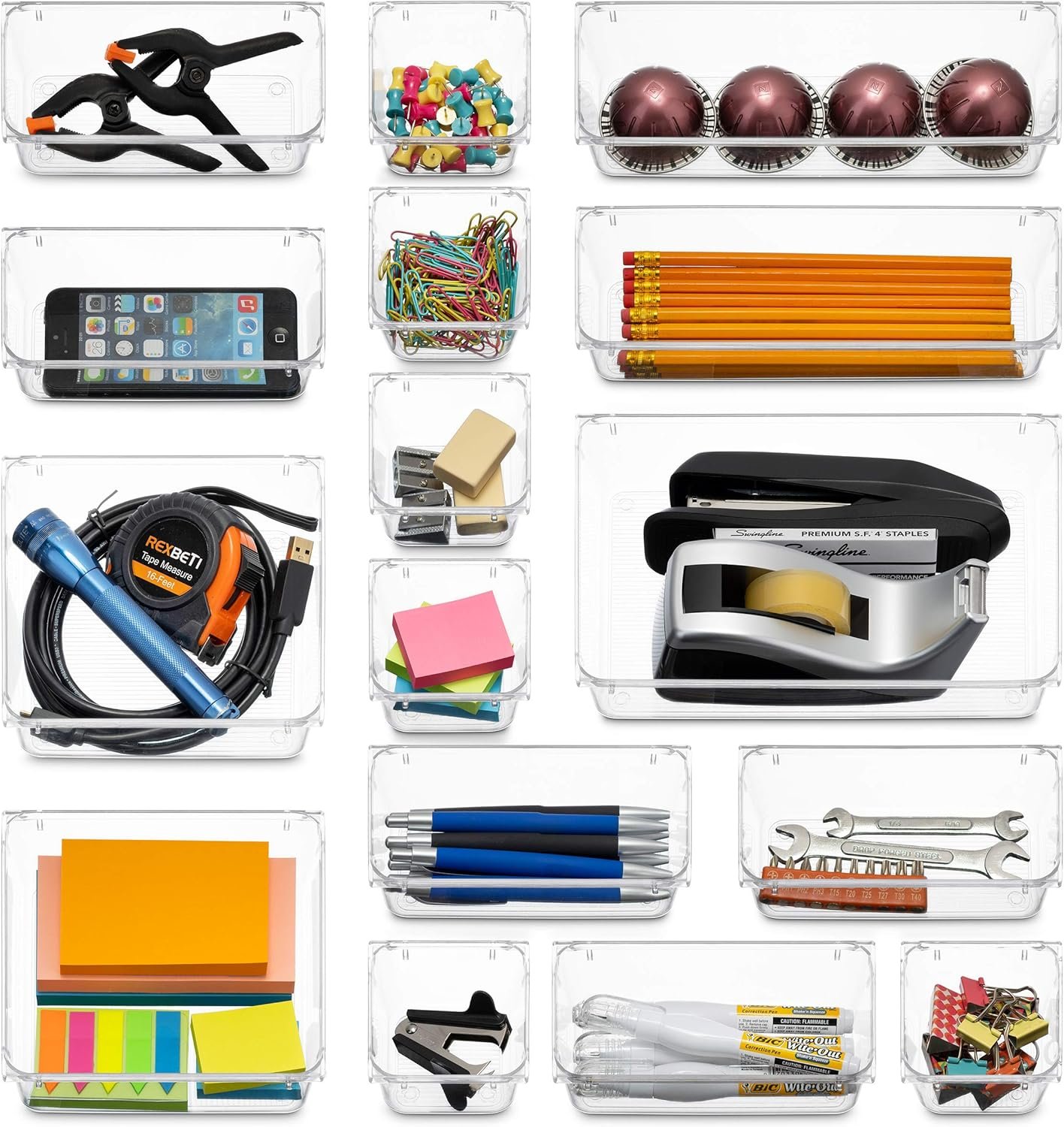 Great for storing organizing cosmetics, makeup tools, hair accessories, jewelry, office supplies, craft supplies, utensils, etc. Made of durable high quality BPA Free shatter-resistant plastic.