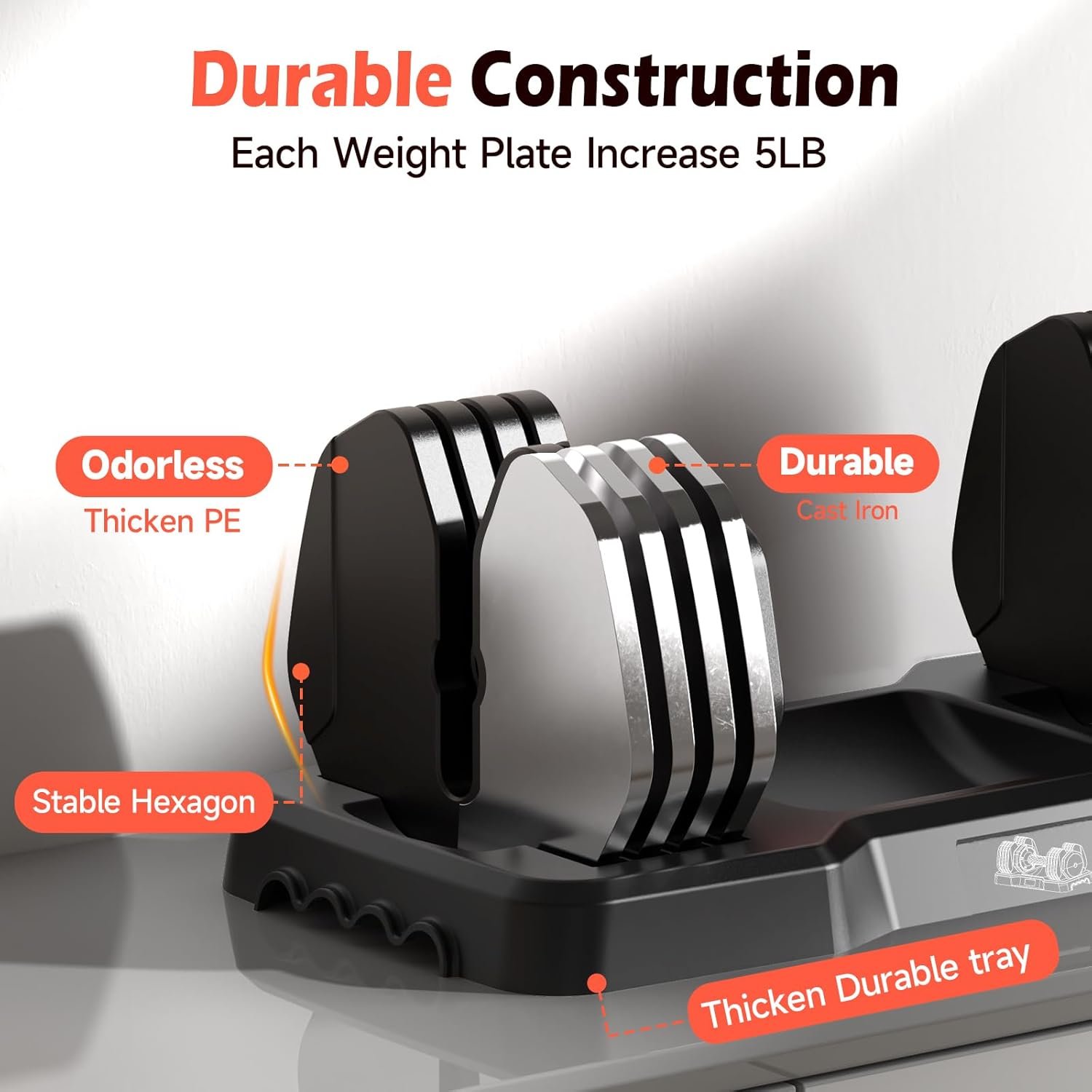 25LB 55LB Adjustable Dumbbells Set, 5LB to 25LB Dumbbells Pair,15LB to 55LB Adjustable Dumbbells of 2, Home Gym Weight Dumbbells Set 50lbs/110lbs, Anti-Slip Handle for Exercise Equipment