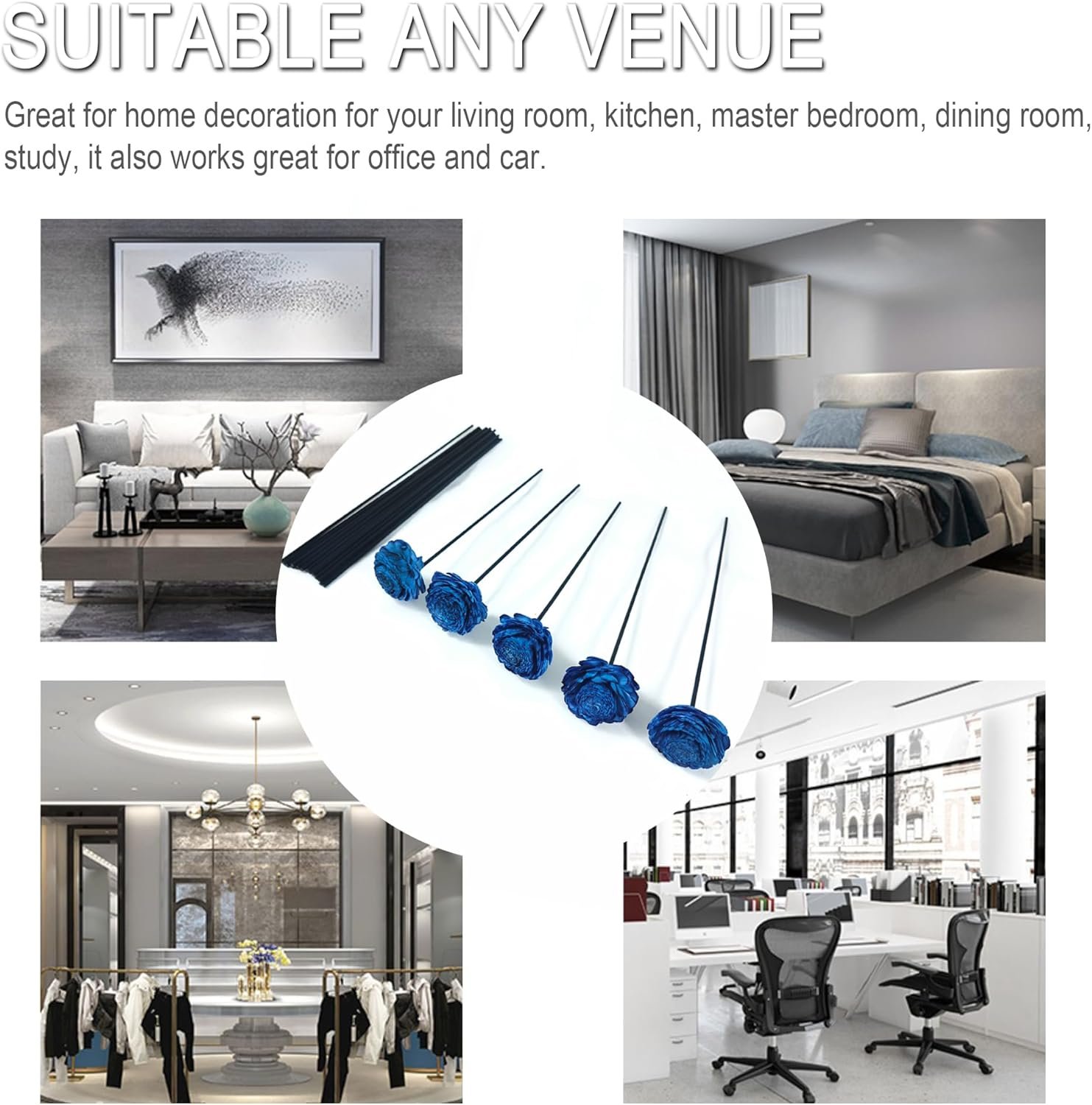 Great for home decoration for your living room, kitchen, master bedroom, dining room, study, toilet, it also works great for office and car.