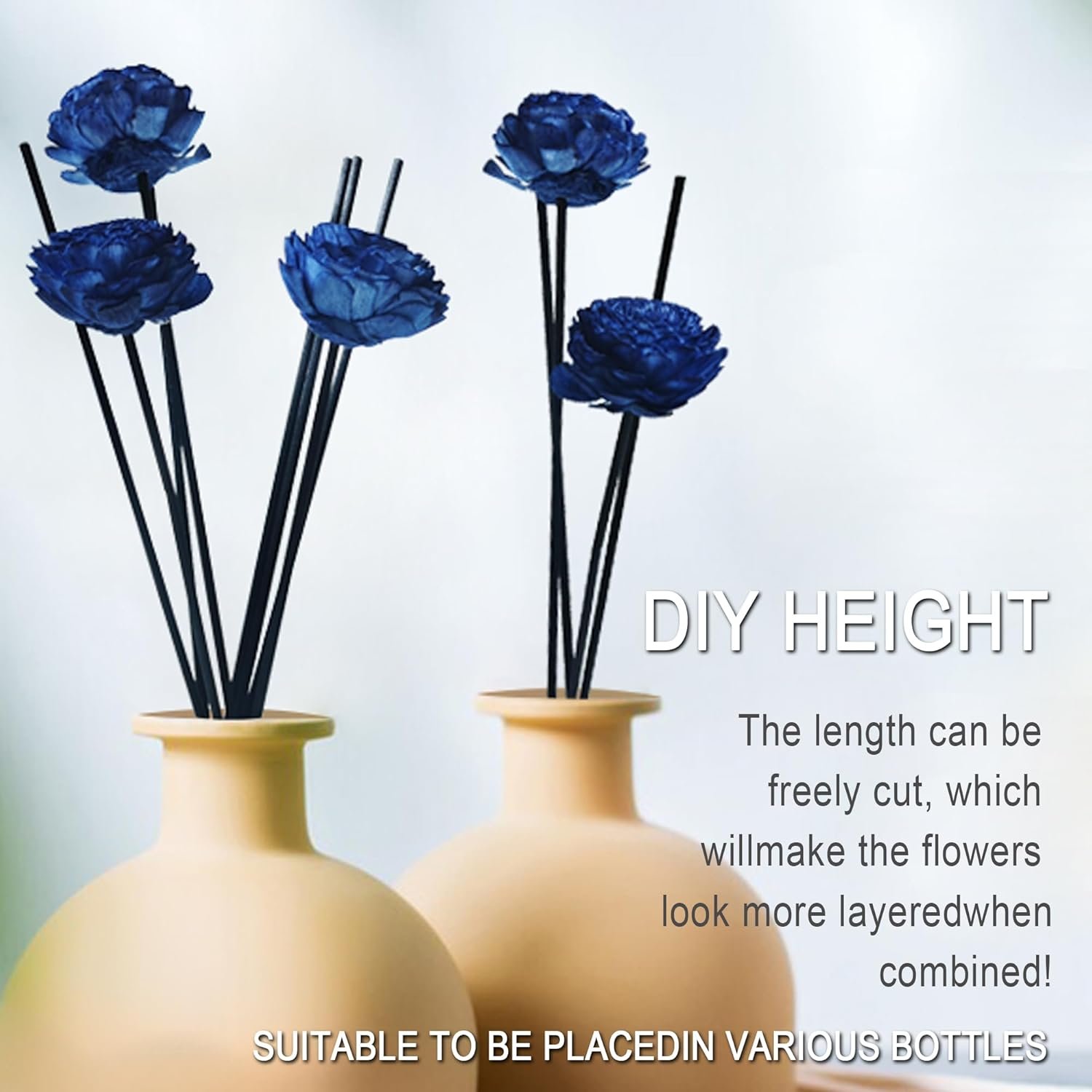 Permium Material : These reed diffuser sticks flowers are made of rattan, Rattan is the most widely used material for reed diffuser sticks, It works well to suppress or absorb the fragrance of any essential oil.