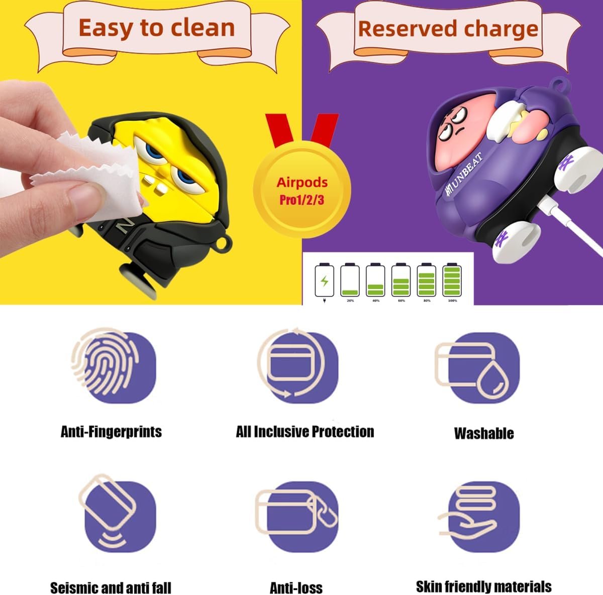 【Fashion&Funny Design】Stylish and unique. The funny cute kawaii appearance makes your Airpods Pro case stand out from other products, the unique pattern is very attractive, and add more fun to your life. Designed for boys, teenagers, couples, etc., it is perfect for a holiday gift.