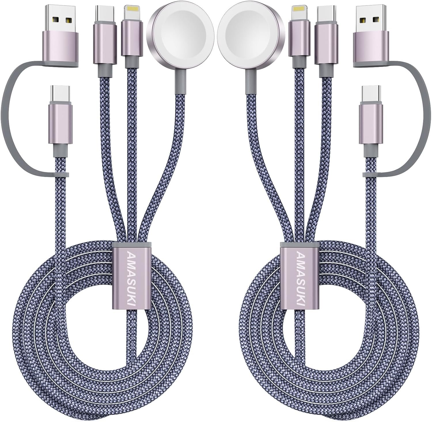 🔹【3 in 2 Charging Design】There are 6 charging ways- USB C/A to iWatch charger & USB C/A to Lightning cable & USB C/A to Type C Cable. The multiple charger support simultaneously charge 3 devices with a USB C/A adapter( Not included ) Compatible for all iWatch ultra series 9/SE/8/7/6/5/4/3/2/1,the lightningPort is compatible with iPhone14/13/12/Pro/Max/iPad,USB C is for iPhone 15/15 Pro/15 Plus/15 Pro Max,Samsung Galaxy S23/ S23+/ S23 Ultra/S22/ S21/ S20/ S20+