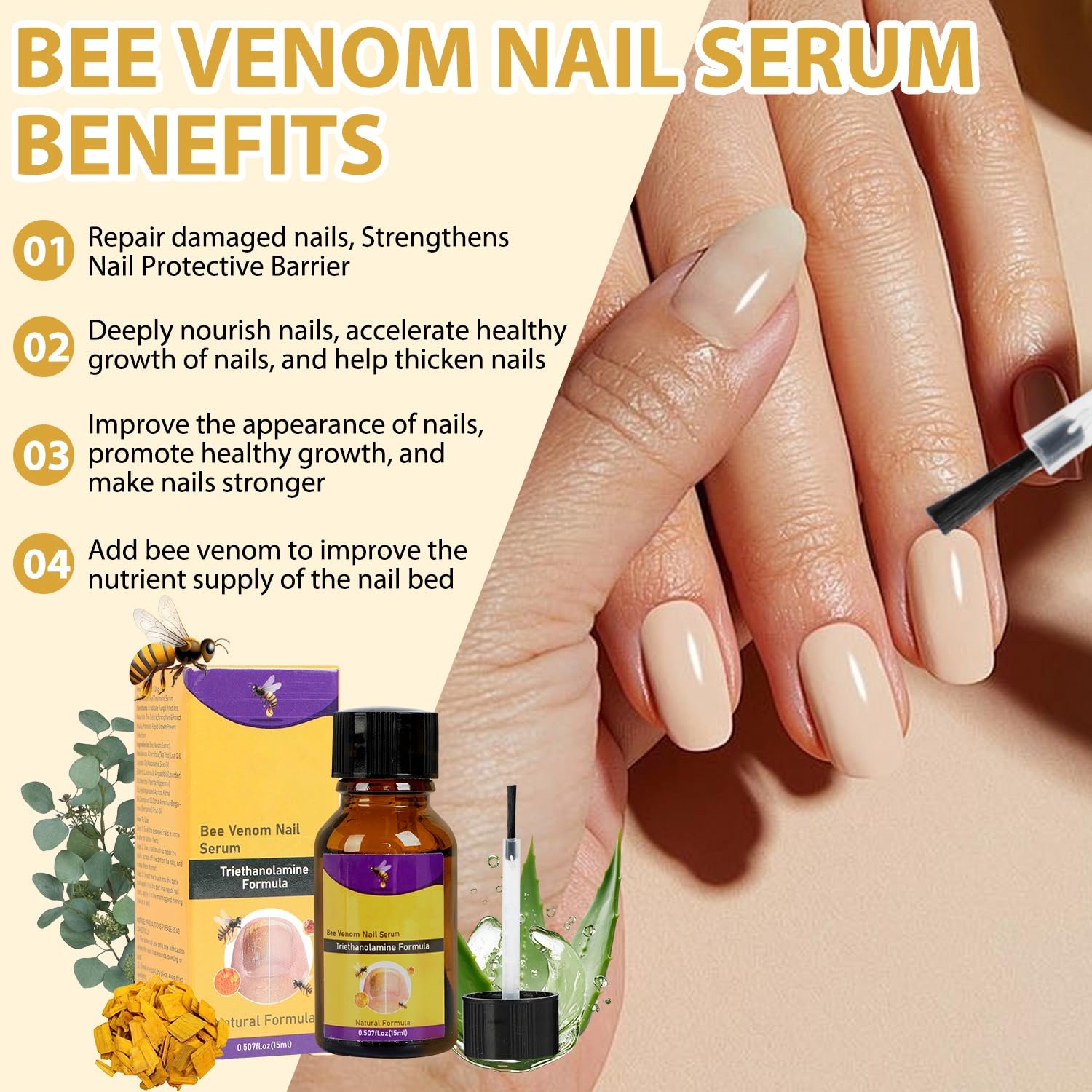 Bee Venom Nail Care Solution, Bee Venom Toenail Serum Liquid, Natural Ingrown Toenail and Nail Growth Repair, Bee Venom Nail Soothing Serum with Brush for Thick, Broken, or Damaged Nail