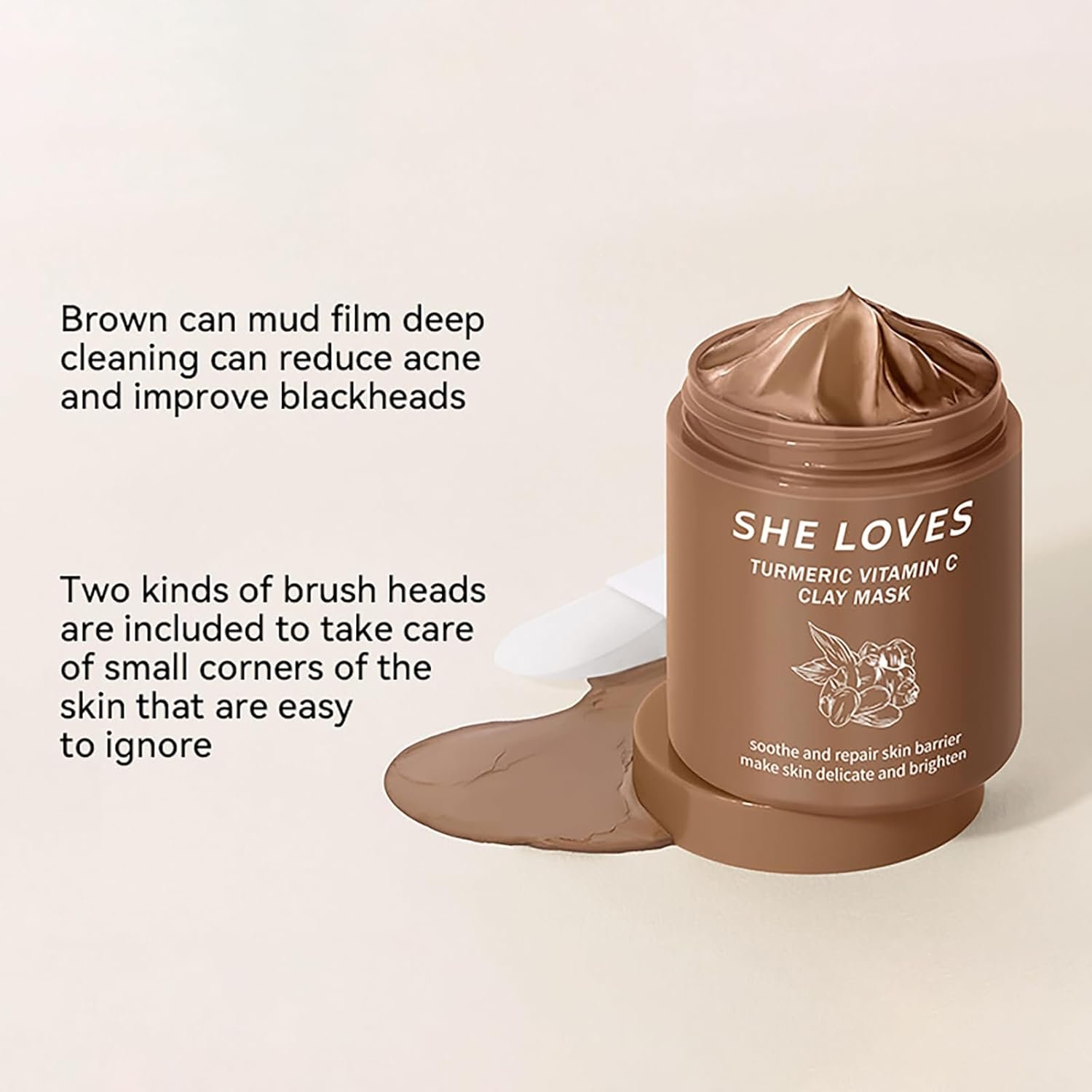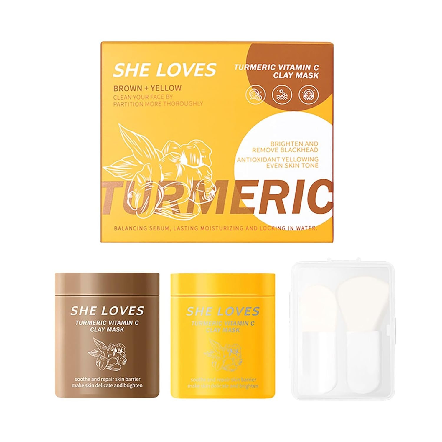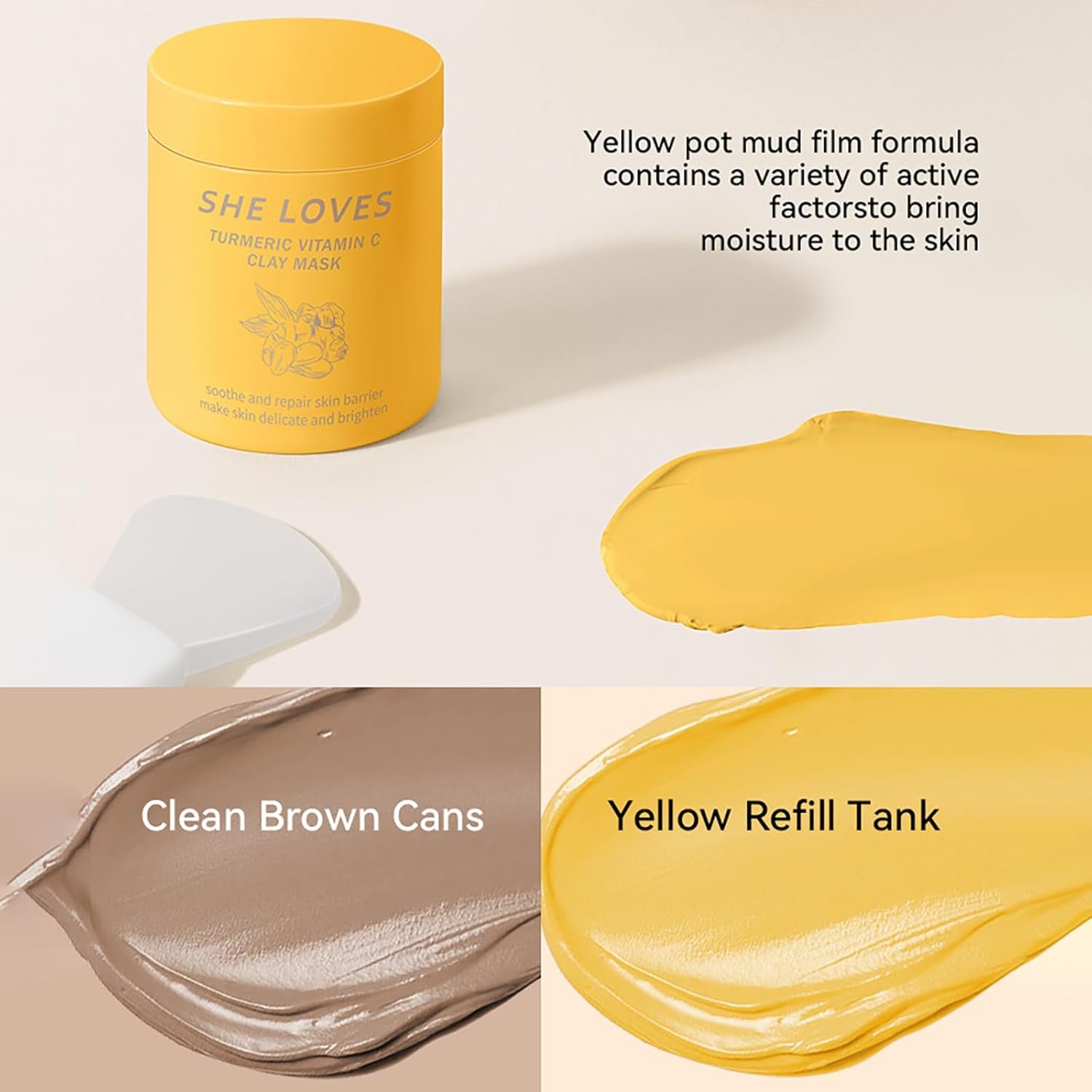 2Pcs Clay Mask, Turmeric Clay Face Cleanser with Vitamin C, Gentle Mud Facial Mask Remove Pore Blockage and Oil, Good for Sensitive Skin, 50g