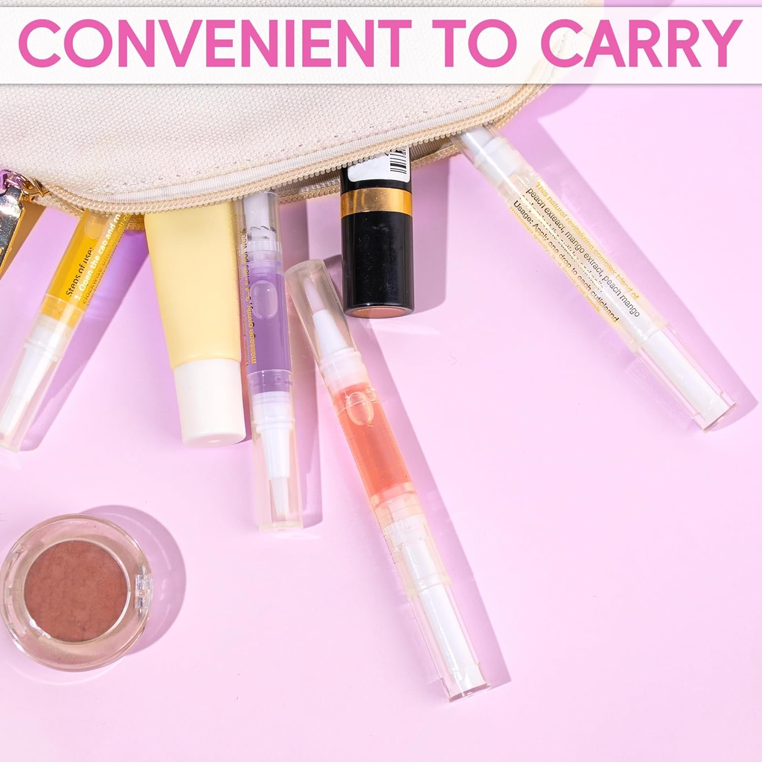【Pen Shaped Design with Soft Brush Tip】Pen shaped design is portable and travel-friendly,perfect for on-the-go nail care, allowing you to maintain hydrated nails anytime,anywhere.The nail oil with a soft brush allows for even distribution of cuticle oil application.