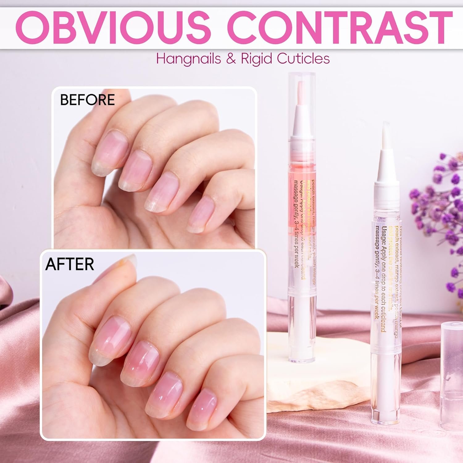 【Easy to Use】For first time use,keep twisting the grip of the cuticle oil pen tube and wait for 1-2 minutes until the oil drips off.Brush the nail oil onto your cuticles and the surrounding skin.Gently massage to encourage absorbtion,3-4 times a week.Note: Cover the cap after use.
