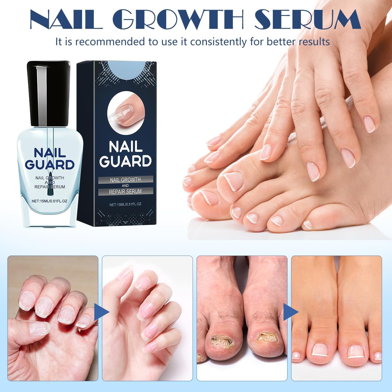 Comprehensive Nail Care: With Nail Repair Serum, experience comprehensive nail care that builds resistance to breakage, resulting in thicker, longer, and stronger nails.