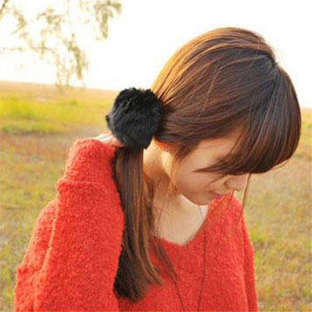 1pc x Pom Pom Elastic Hair Tiles Flurry Ball Hair Ponytail Holder Hair Rope Faux Rabbit Fur Hair Accessories