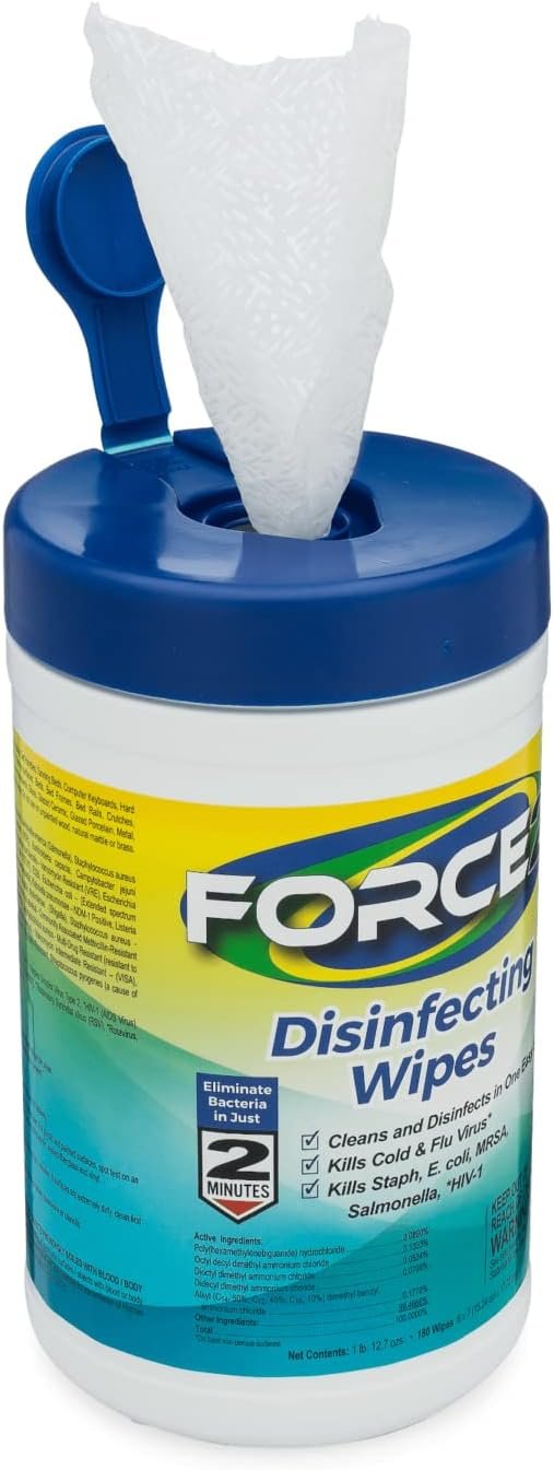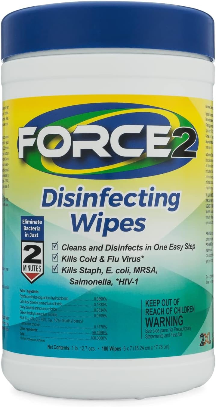 FORCE2 Disinfecting Wipes are safe, fast-acting, medical-grade disinfectant wipes that are effective against 46 pathogens. These powerful wipes kill germs in 2 minutes and reduce cross-contamination on hard, non-porous treated surfaces. FORCE2 Disinfecting Wipes provide daily disinfecting defense needed in healthcare and long-term care facilities, schools, offices, etc; anywhere stringent protocols are necessary to help prevent illness and protect people.