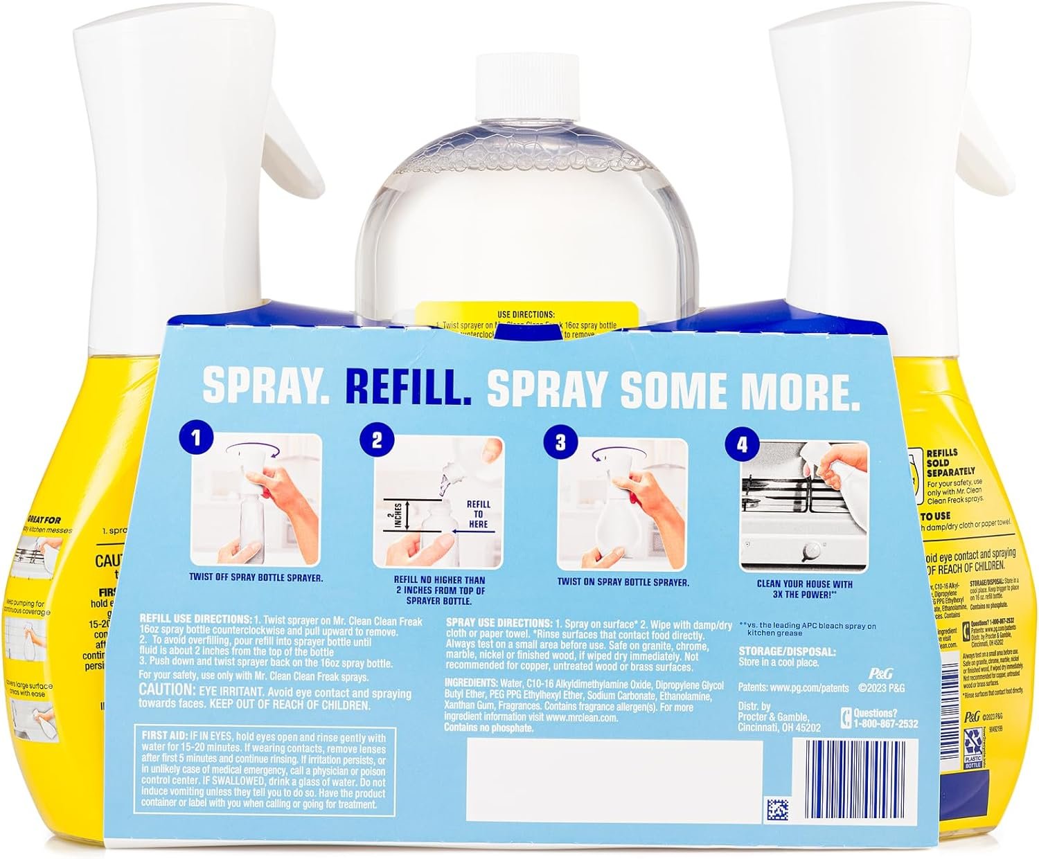 Includes 2 16 fl oz Starter Kit Bottles with Power Nozzle and 1 30.9 fl oz Refill Bottle, 1 microfiber lint-free cleaning cloth & 1 squeegee