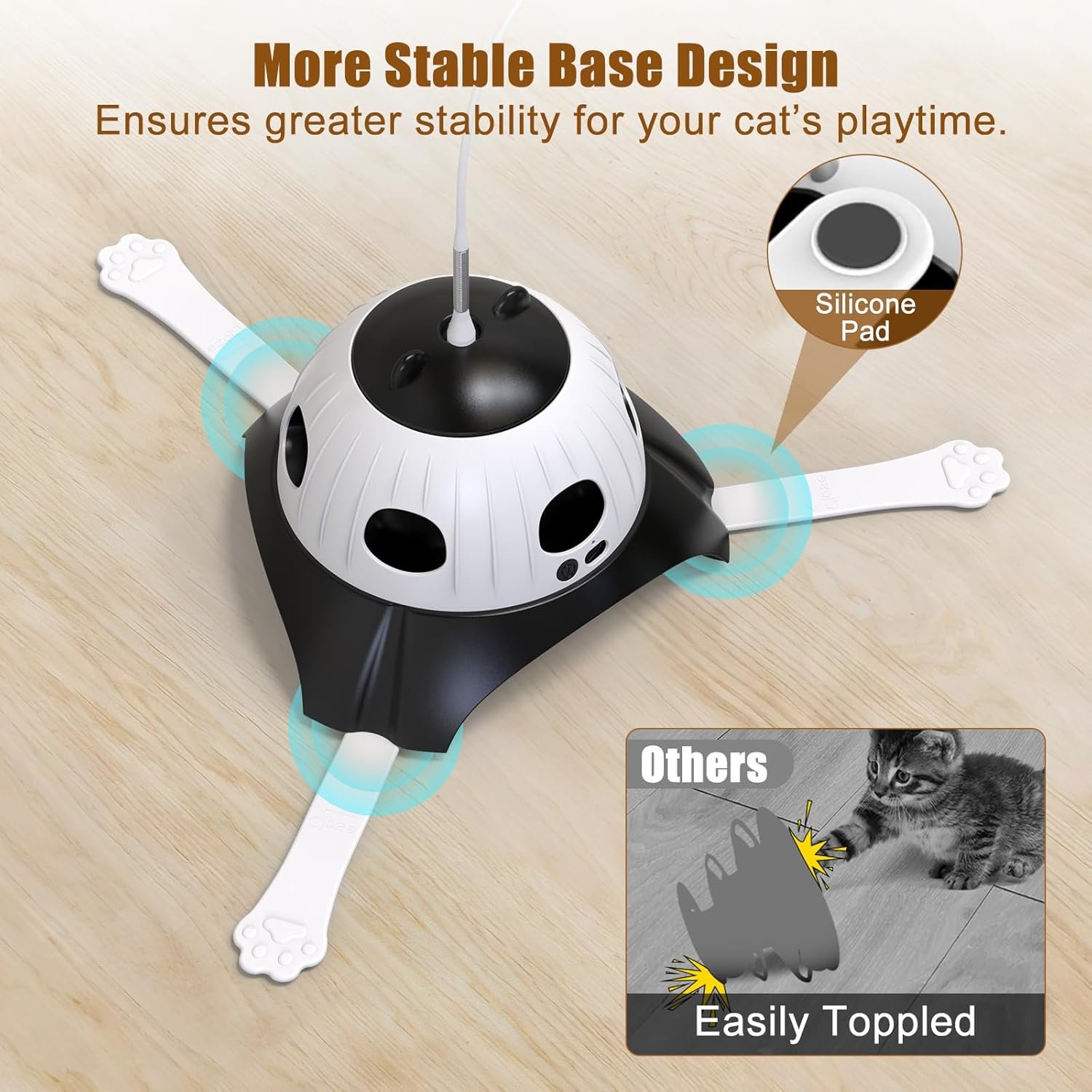 [Anti-Tip Design – More Stable] – The pet toy features a unique base design that effectively prevents it from tipping over during play, ensuring stability even during the most enthusiastic sessions. Equipped with six silicone non-slip pads on the bottom, this interactive cat toy stays firmly in place, providing a safe and enjoyable play experience for your cat. (NOTE: Unfold the base before use)