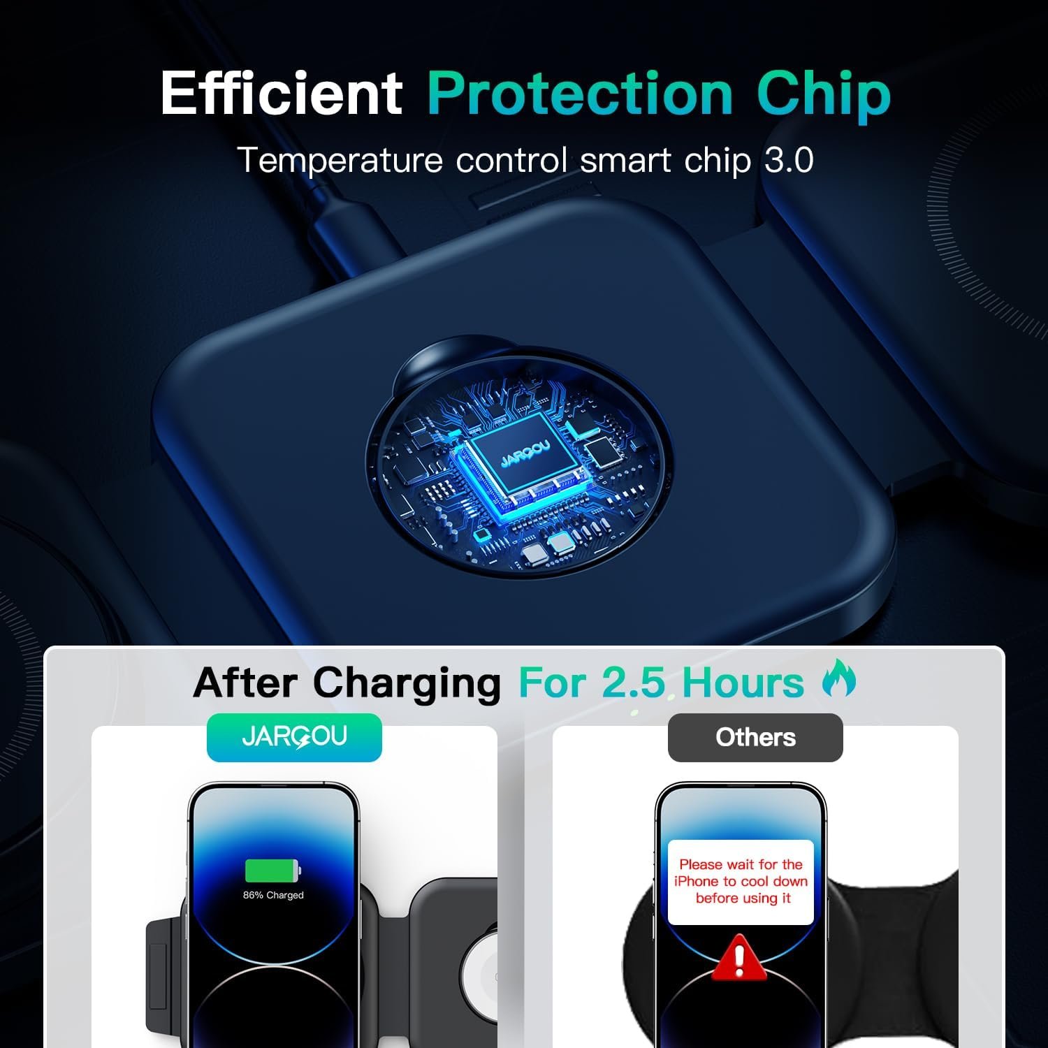 Compatible models: JARGOU 3 in 1 charging station is compatible for iPhone 16/15/14/13/12 series, for iWatch series 10/9/8/7/6/5/4/3/2/Ultra/Ultra2/SE, for AirPods 4/3/2/Pro/Pro 2. The magnetic attraction function is only for iPhone 16-12 series