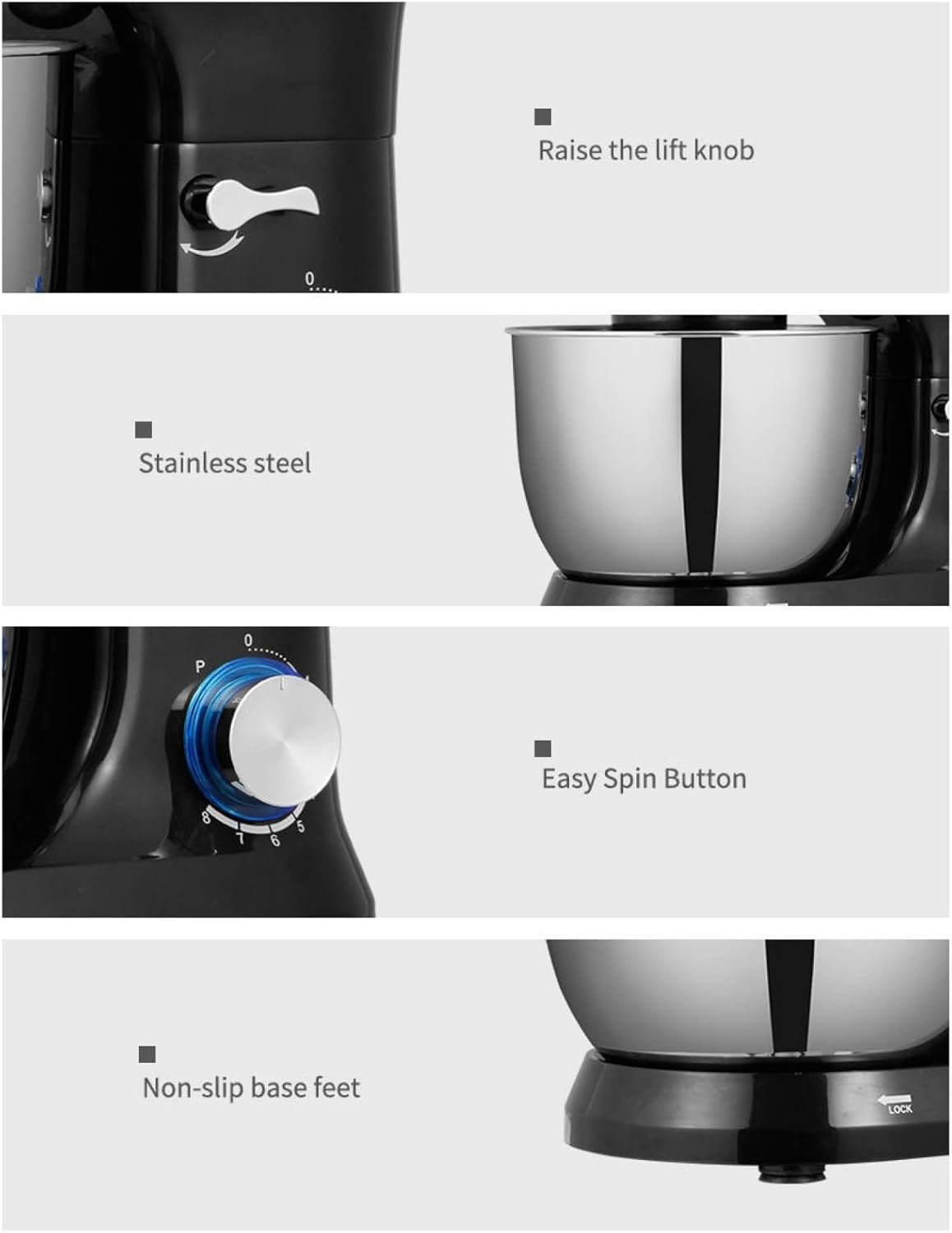 Kitchen stand mixer with its powerful motor and multiple attachment options, this mixer can assist you in making everything from bread dough to whipped cream with ease.Say goodbye to tired arms from hand mixing and hello to the convenience of a stand mixer. Upgrade your baking game and make your life easier today.
