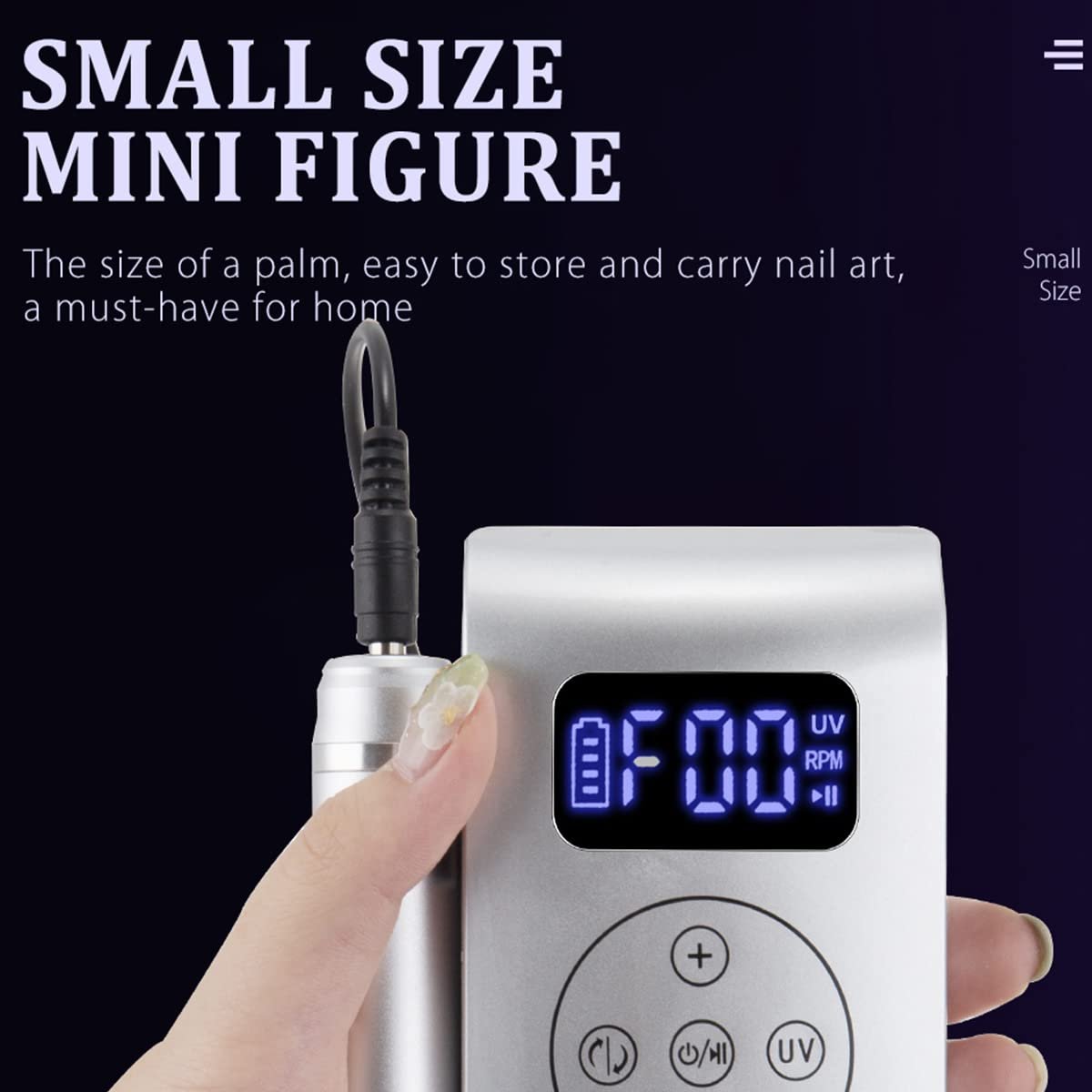 Nail quick-drying UV lamp: The multi-functional nail polisher contains 9 red light whitening lamp beads, so that your nail polish can quickly solidify and avoid rubbing mud. Built-in 2000mAh rechargeable battery, fully charged for about 2 hours, the electric nail file can work up to 12 hours. The LCD screen displays the speed, direction of rotation, UV baking lamp, phototherapy time and remaining power.