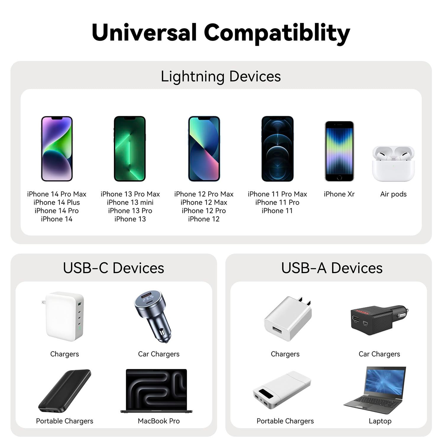 iPhone 14/ iPhone 14 Pro/ iPhone 14 Plus/iPhone 14 Pro MaxiPhone 13/ iPhone 13 Pro/ iPhone 13 Pro Max/iPhone 13 miniiPhone 12/ iPhone 12 Pro/ iPhone 12 Pro Max/iPhone 12 miniiPhone 11/ iPhone 11 Pro/ iPhone 11 Pro MaxiPhone XS/ XS Max/ XR/ X/ 8/ 8 Plus/ iPhone 7/ iPhone 7 Plus/ iPhone 6S/ iPhone 6S Plus/ iPhone 6/ iPhone 6 Plus/ iPhone Se/ iPhone 5S/ iPhone 5C/ iPhone 5 and moreAirPods / AirPods 2nd Gen / AirPods 3rd Gen / AirPods Pro / AirPods Pro 2nd Gen