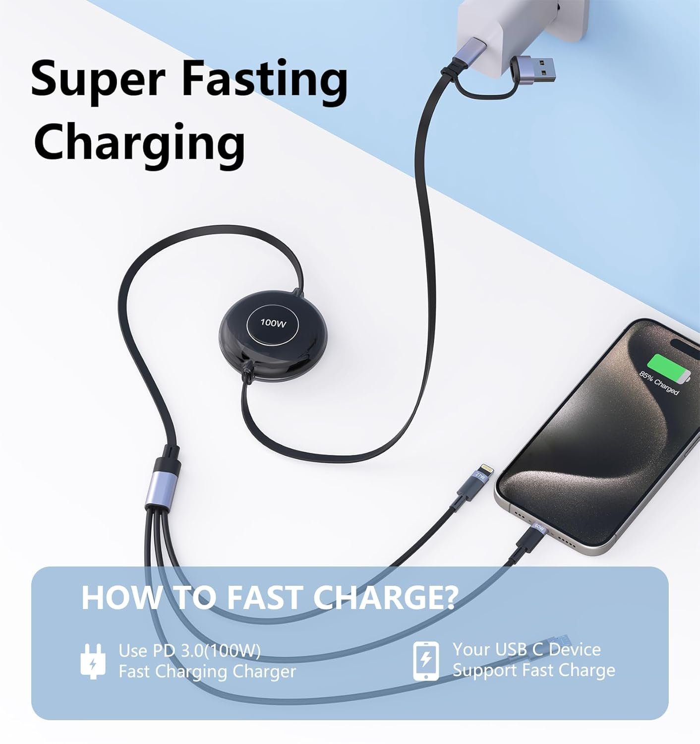 3-in-1 Charging Solution: Includes essential connectors to charge multiple devices, including smartphones, tablets, and other USB-powered gadgets; supports simultaneous charging with ease