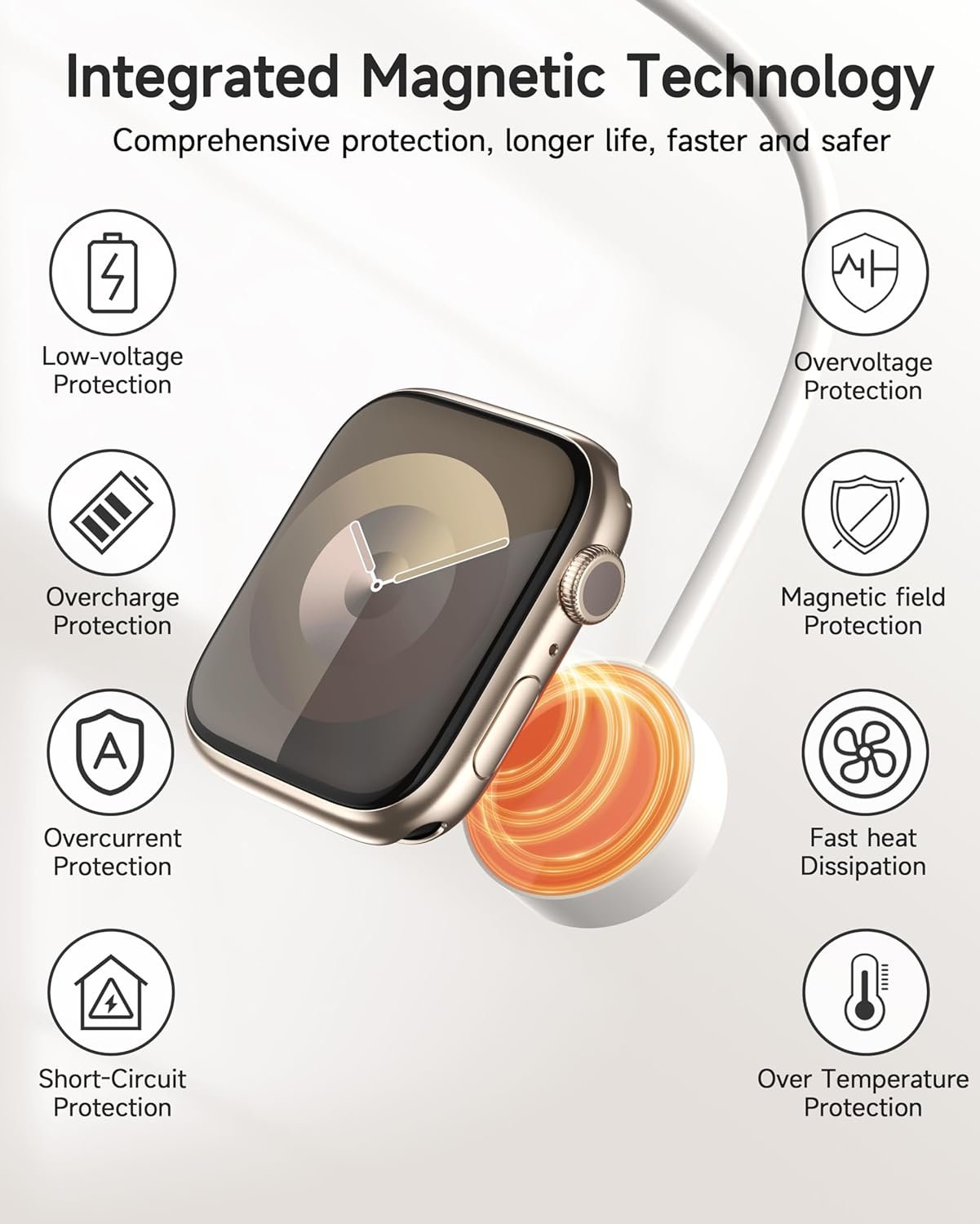 Magnetic iWatch Charging: Experience hassle-free charging with strong magnetic adsorption technology in this Apple Watch cable, ensuring your iWatch stays securely in place and charges steadily every time. (Note: no iwatch case for better charging speed)