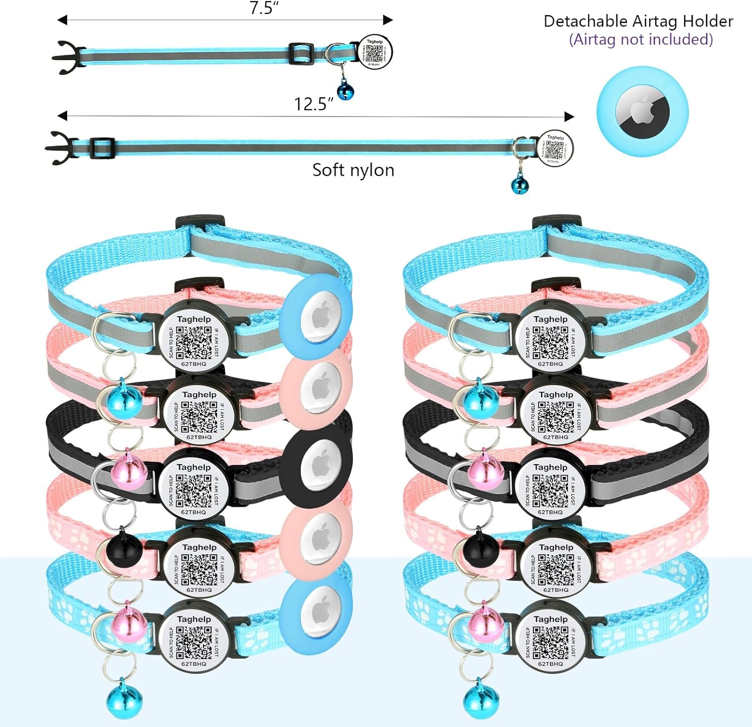 3. [Adjustable Sizes] Cat collars are available in 7.5-12.5″ , suitable for kittens/cats/puppies/small dogs. Not recommended if your pet’s neck circumference is larger than 12.5 inches. 【Designed for Airtag】Taghelp Airtag Cat Collar is designed specifically for apple airtag.The Airtag holder is made of high quality elastomer silicone, skin-friendly, odorless, lightweight, soft and durable.It can protect your Airtag against bumps, drops, and scratches . Making you easier to find your pets ; NOTE: AirTag is not included