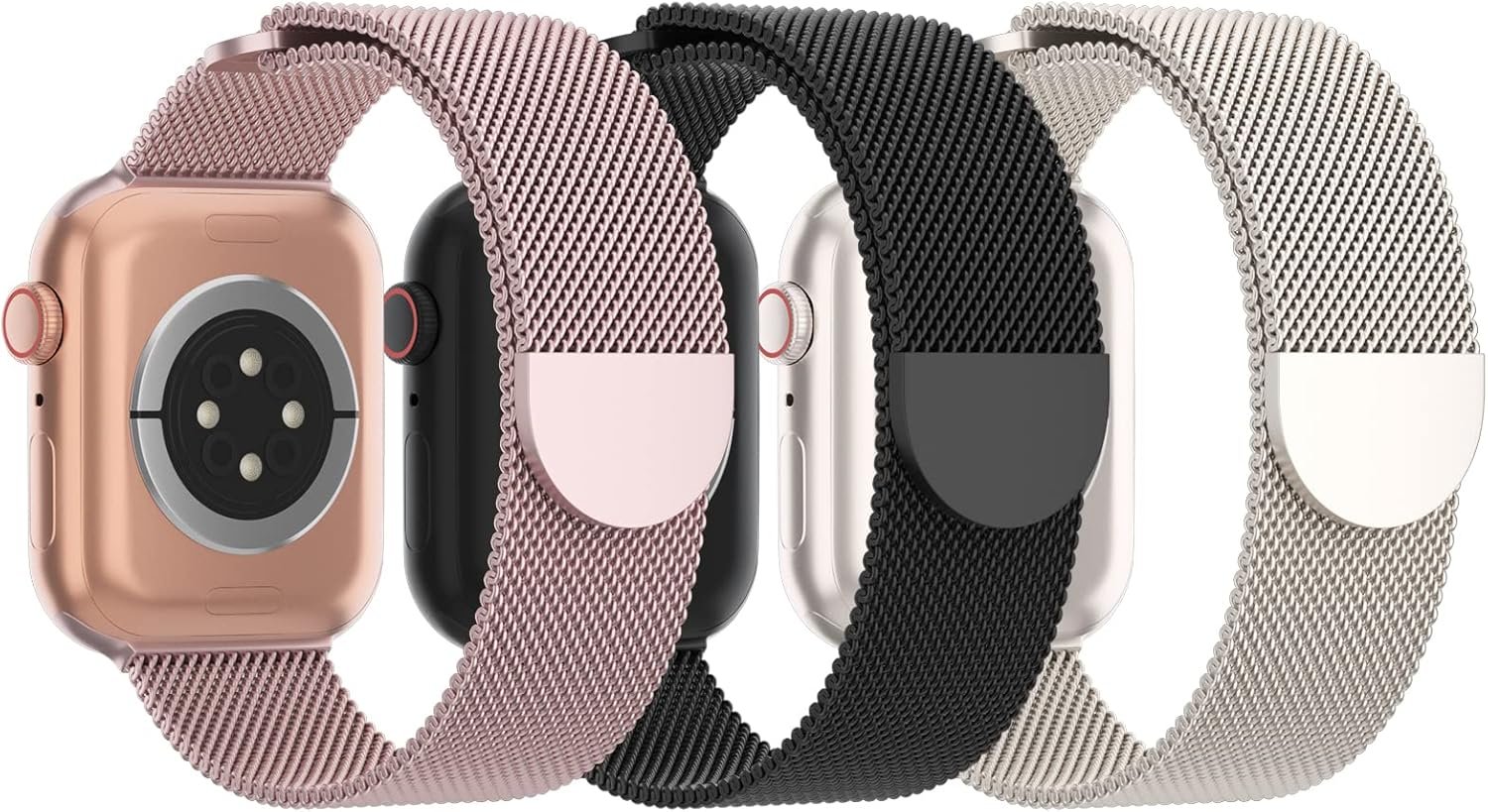 3 Pack Mesh Metal Band Compatible with Apple Watch Band 38mm 40mm 41mm 42mm 44mm 45mm 46mm 49mm, Stainless Steel Magnetic Loop Strap for iWatch Ultra/2 Series 10/9/8/SE/7/6/5/4/3/2/1 Men Women