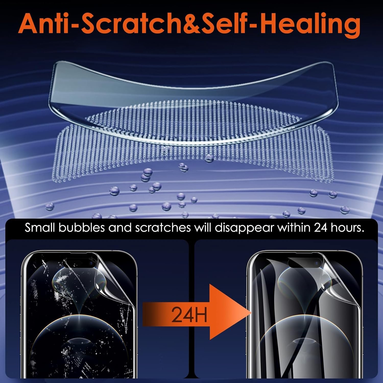 【Scratch Auto-Repair】- The screen protector iPhone 15 Pro Max has slow rebound technology and self-healing power. Minor scratches and bubbles will automatically be repaired within 24 hours. (If there are bubbles after installation, please do not tear off and wait for 24h)