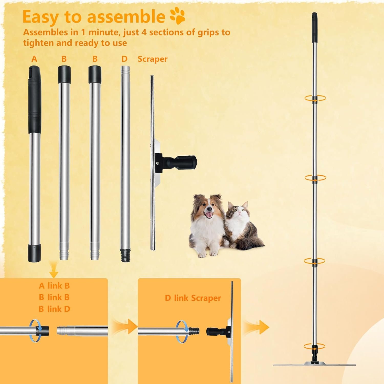 [▶EASY to ASSEMBLE and CLEAN◀] Pet hair remover Easy to assemble, four section handle with threaded design, turn and tighten to use immediately, only 30 seconds to assemble, stainless steel material is easy to clean, after use, just rinse with water and it will be as clean as before (some hard lumps stuffed in the crevices can be eliminated with a toothpick)