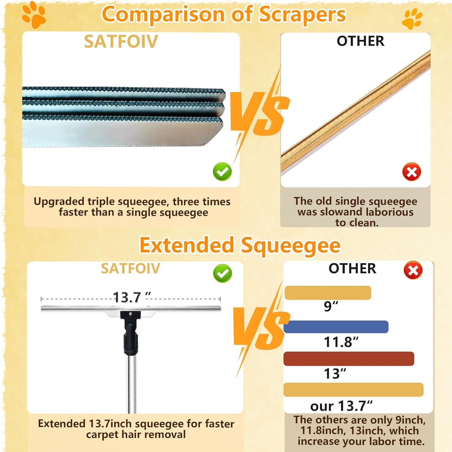 [▶EXTENDED 13.7 INCH◀] Other shaver scraper length 9inch, 11.8inch, 13inch, compared to their cut corners length, our Carpet rake 13.7inch will scrape faster, with our triple scraper design, the speed will be 4 times faster than theirs, which will greatly reduce your strength, in addition, our products do not have annoying noise, use quite decompression and comfortable!