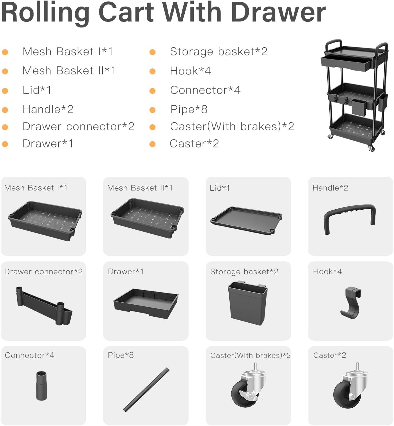 Rolling tray Easy to Assemble: Shopping cart with wheels,which is quick and easy to assemble.REBECAT storage cart with clear instruction manuals that make it a breeze for anyone to put together.