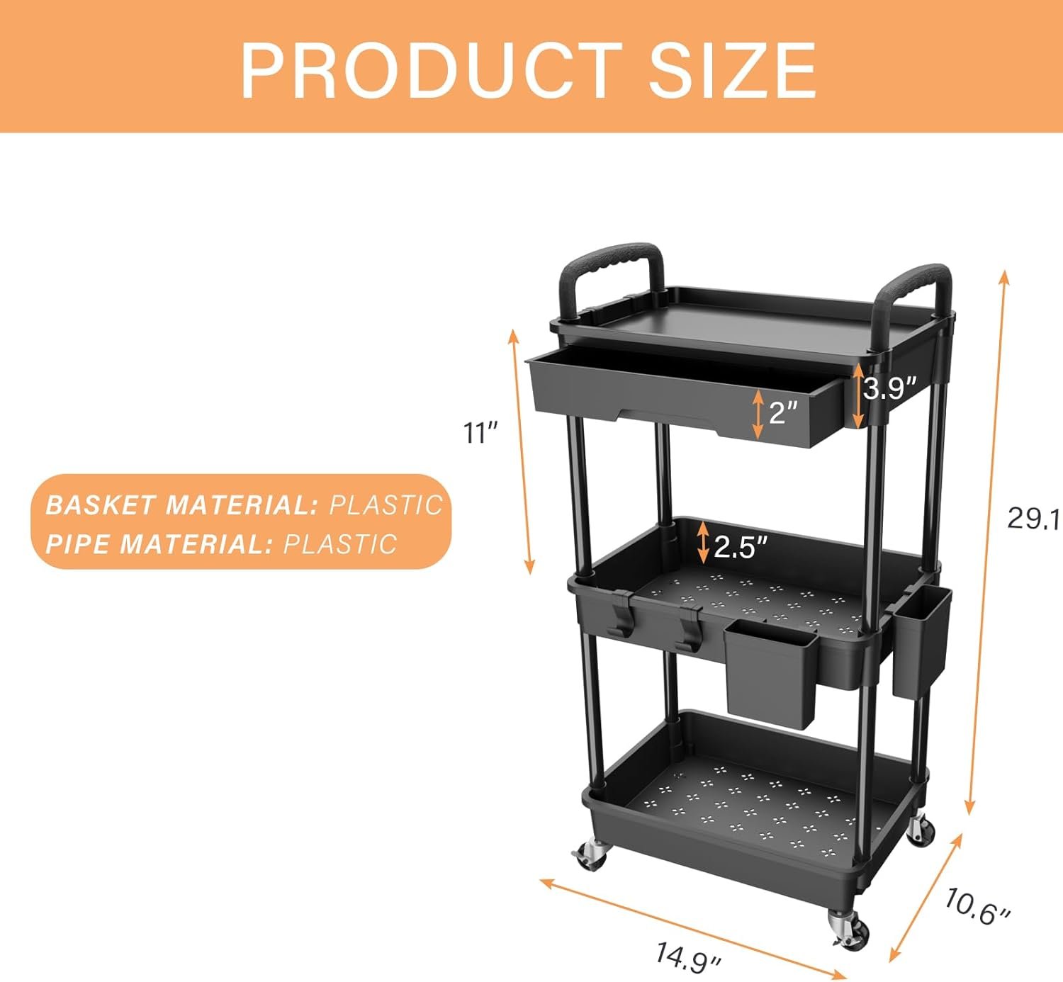 Versatile carts with wheels: 3 tier cart be used perfecty for home, office, salon or garage.Oganizer cart is multi-functional and can be used for a variety of purposes depending on your needs.