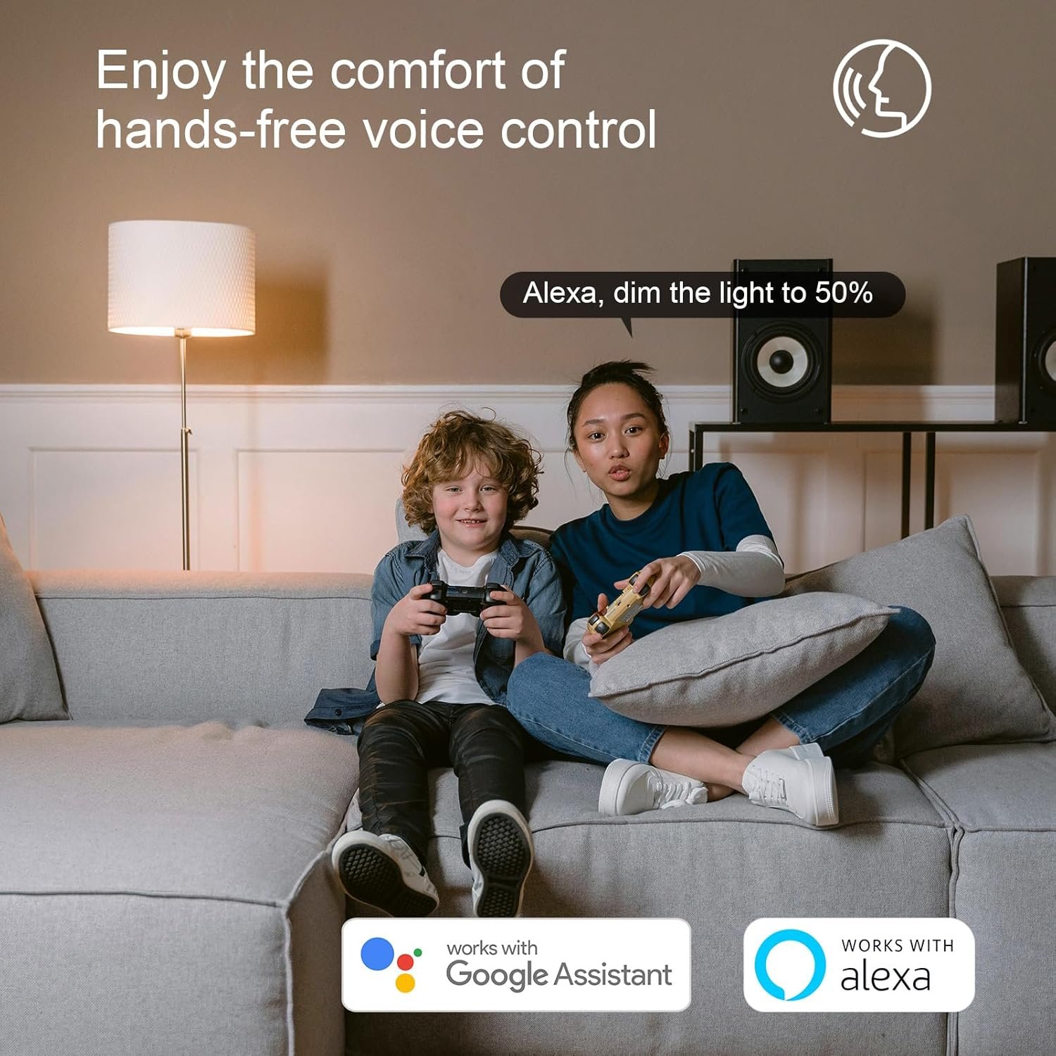 【Voice Control】: Our 3-way wifi light switch lets you enjoy the hands-free convenience of controlling the lights in your home with your voice via Amazon Alexa or Google Assistant; perfect for times when your hands are full or entering a dark room. no hub required.