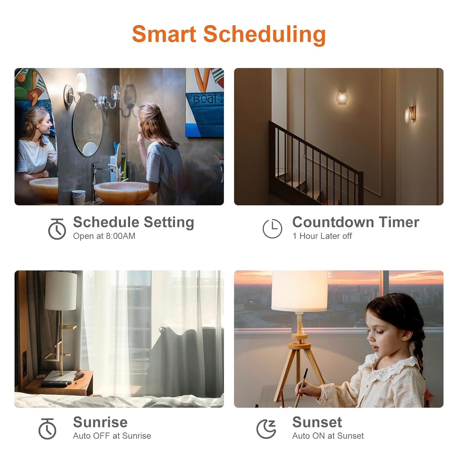 【0%-100% Dimming with Scheduling】: Adjust desired brightness with the button or Smart Life app. Tailor your lighting to fade on or gently fade off the lights while your child drifts off to sleep. Set light schedules for waking up with a soft glow in the morning.