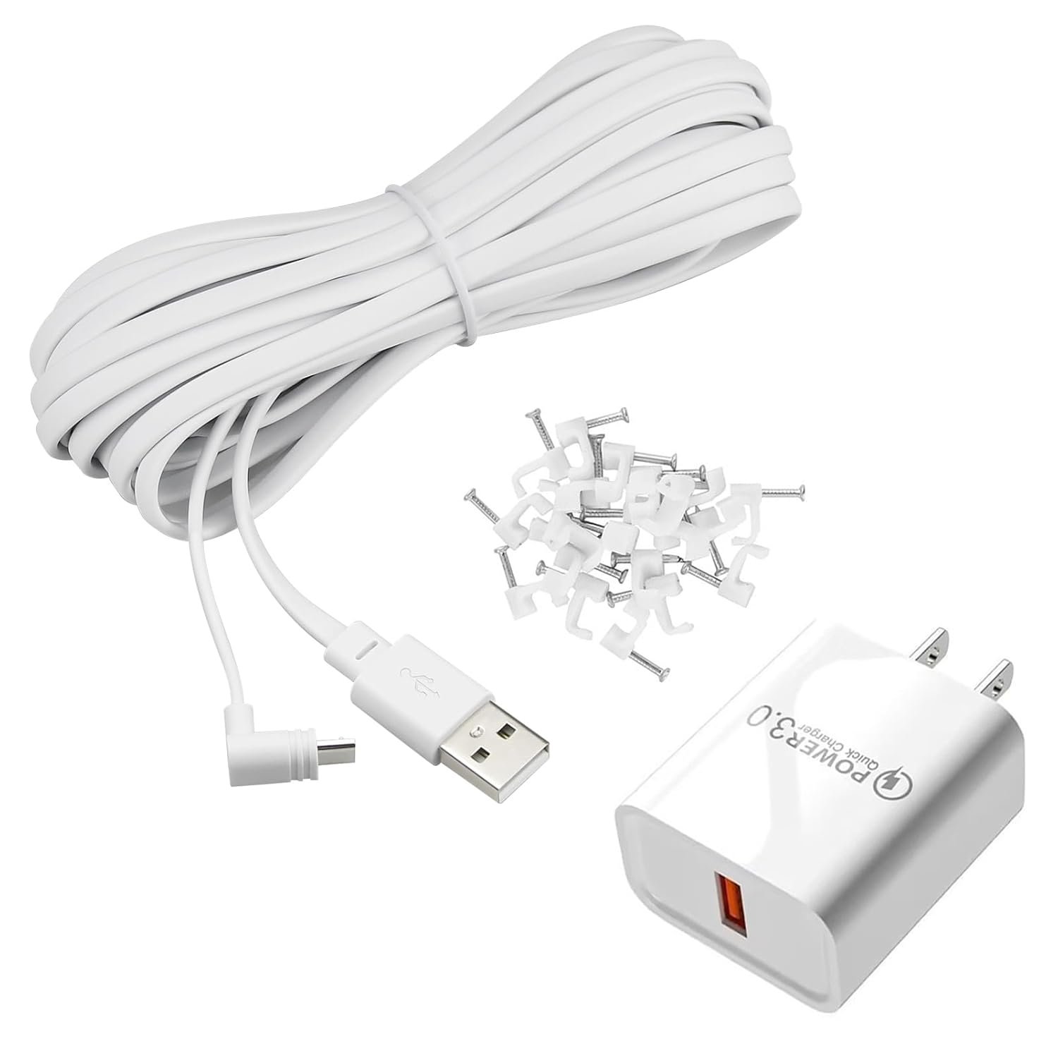 What you get: 1 x 30 ft Charger Cable, 1 x 18W Power Adapter, 10 x Wire Clips Cable Nails