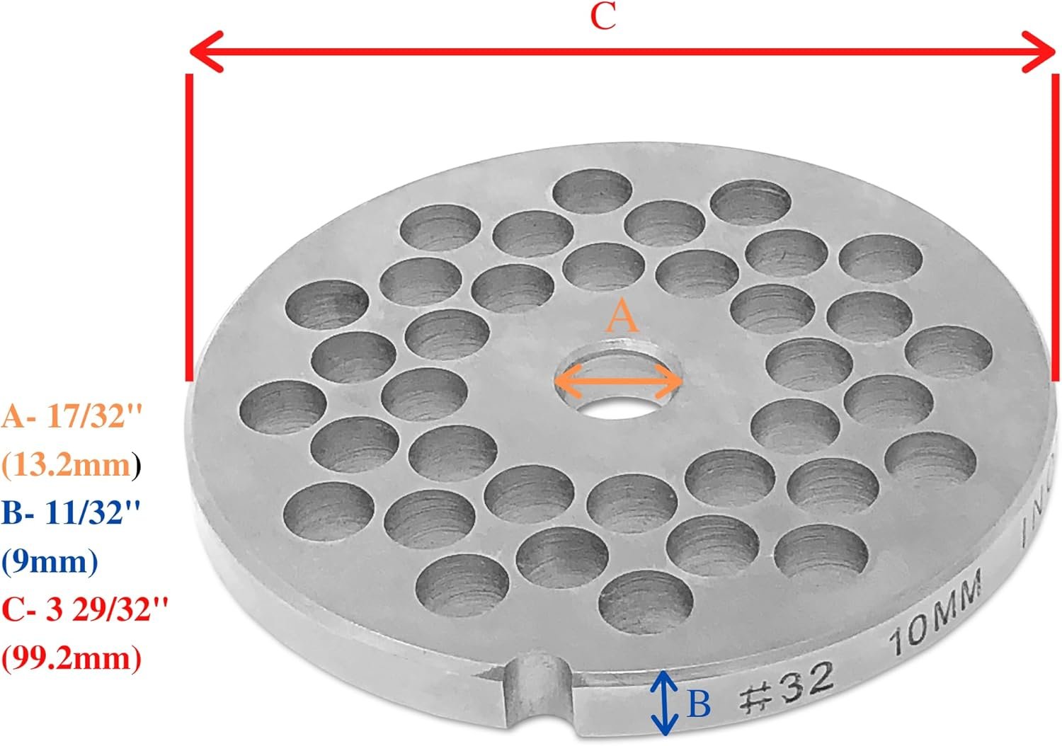 Premium Quality Replacement: Upgrade your meat grinder with our #32 Stainless Steel Disc Replacement. Crafted from high-quality stainless steel, this plate ensures durability and longevity, providing a reliable replacement for your worn-out or damaged part.