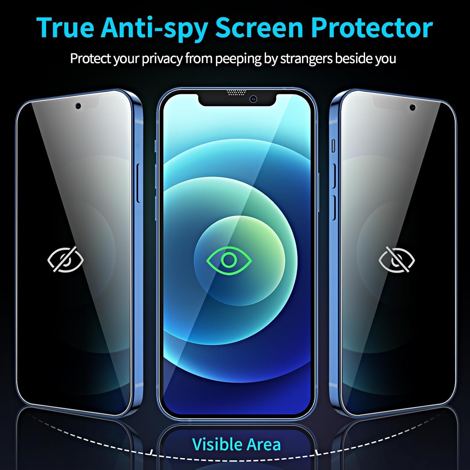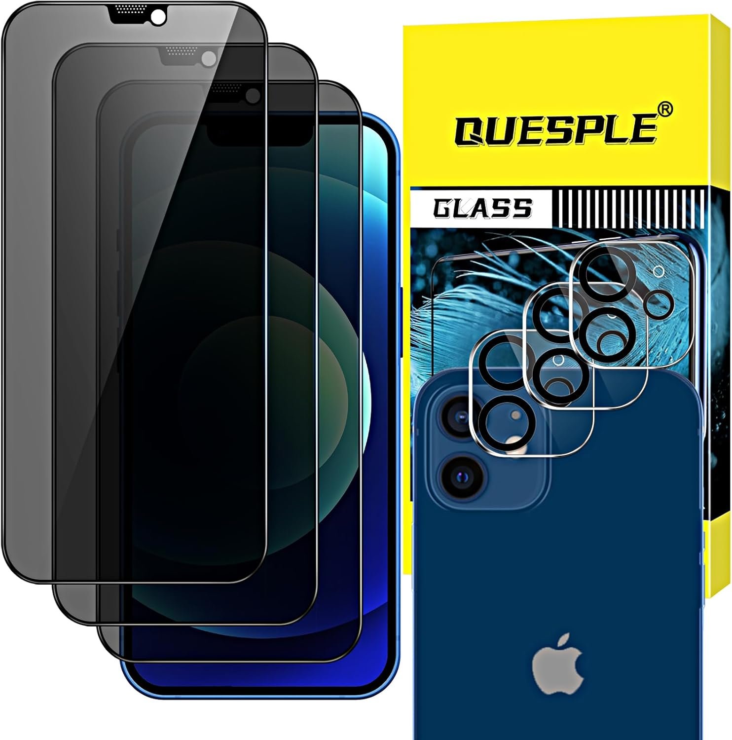 [3+3 Pack Privacy Screen Protector for iPhone 12 6.1 inch + Camera Lens Protector, 9H Anti-Spy Tempered Glass, Easy Installation, High Sensitivity, Case Friendly