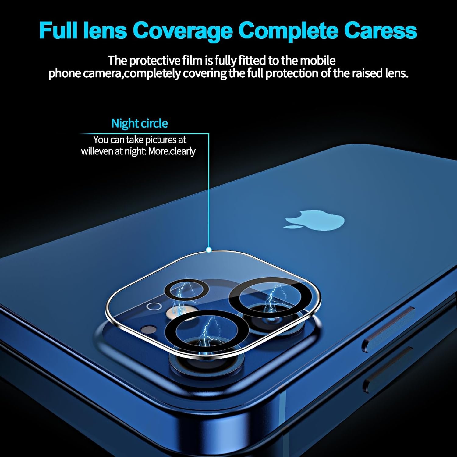 [Camera Protector Double Protection] This iPhone 12 camera protector is made of 9H glass, with light transmittance and night shooting function, which effectively protects the entire lens from drops and scratches, and is not easy to fall off, without any bubbles or white edges.