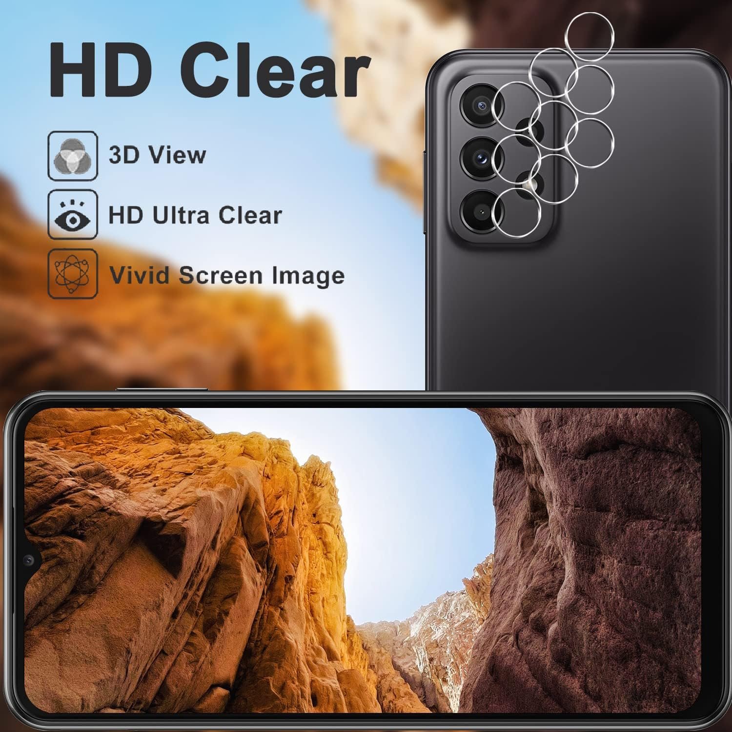 Compatible Models: Designed for Samsung Galaxy A23 5G/4G screen protector, not fit for other models; Package includes 3 pcs tempered glass screen protector and 3 pcs camera lens protector, 3 wet & dry wipes, 3 dust stickers